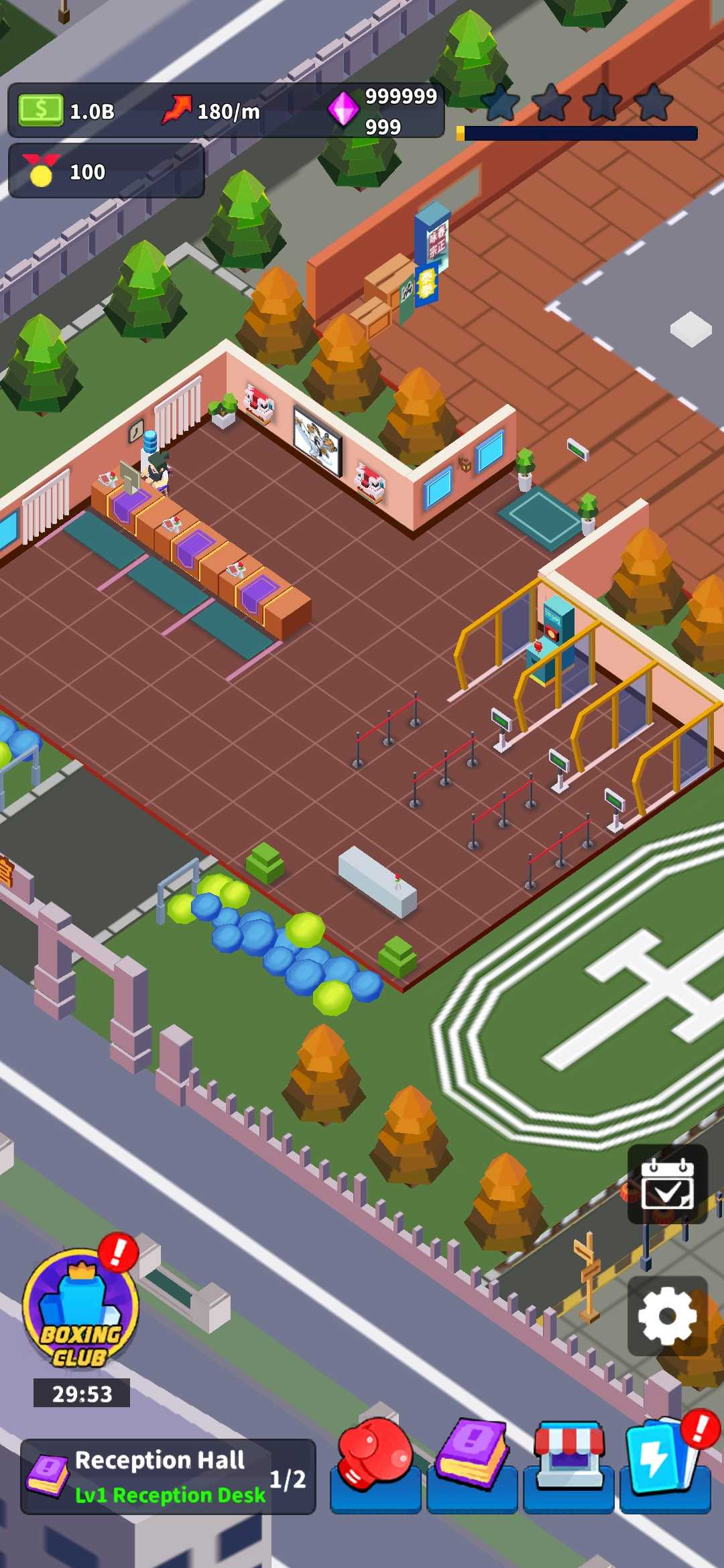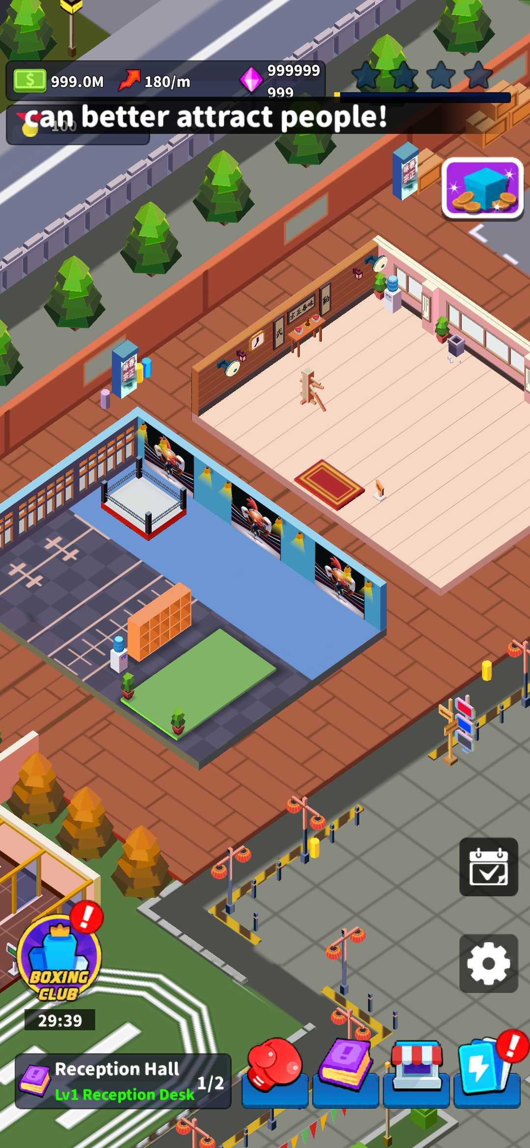 功夫中心 功夫中心是一个模拟商业游戏,玩家将建造或开放设施,培训员工等。 这是一个功夫世界,在这里我们招生可以练习咏春拳、拳术、少林寺拳……等等 用收益分配的收益来实现更高的收益。 同时,它还可以招募和训练选手,在拳击比赛中展示自己的技能并取得胜利。 成为武术大师和商业大亨。