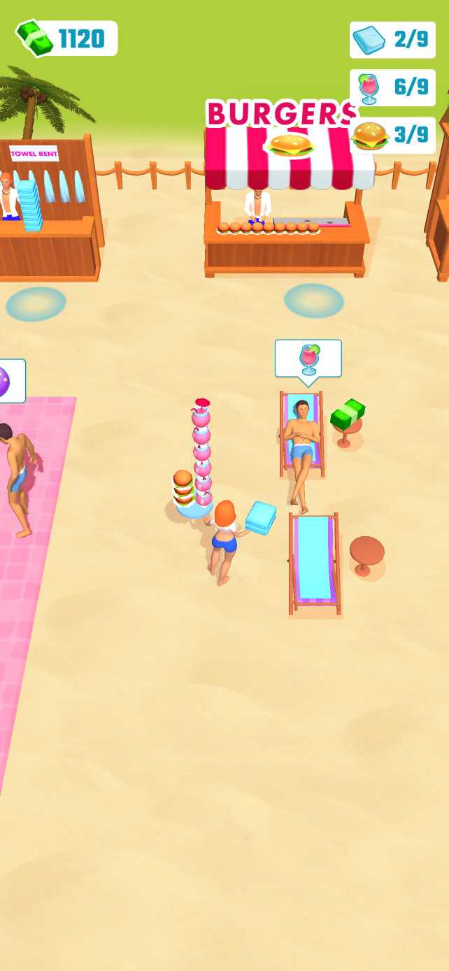 3、非常简约的游戏风格《闲置海滩度假村》游戏2023最新版快来八门神器下载吧!