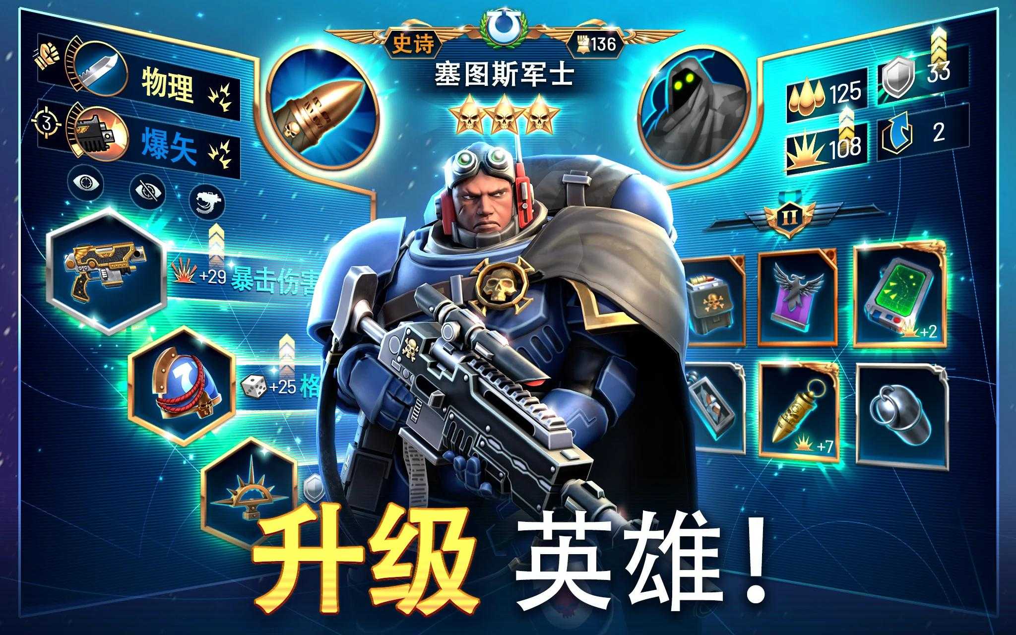 1、《战锤40k:战术》游戏中,趣味性的策略游戏玩法,简单的点触式操作,所有年龄段的玩家都可以快速上手。