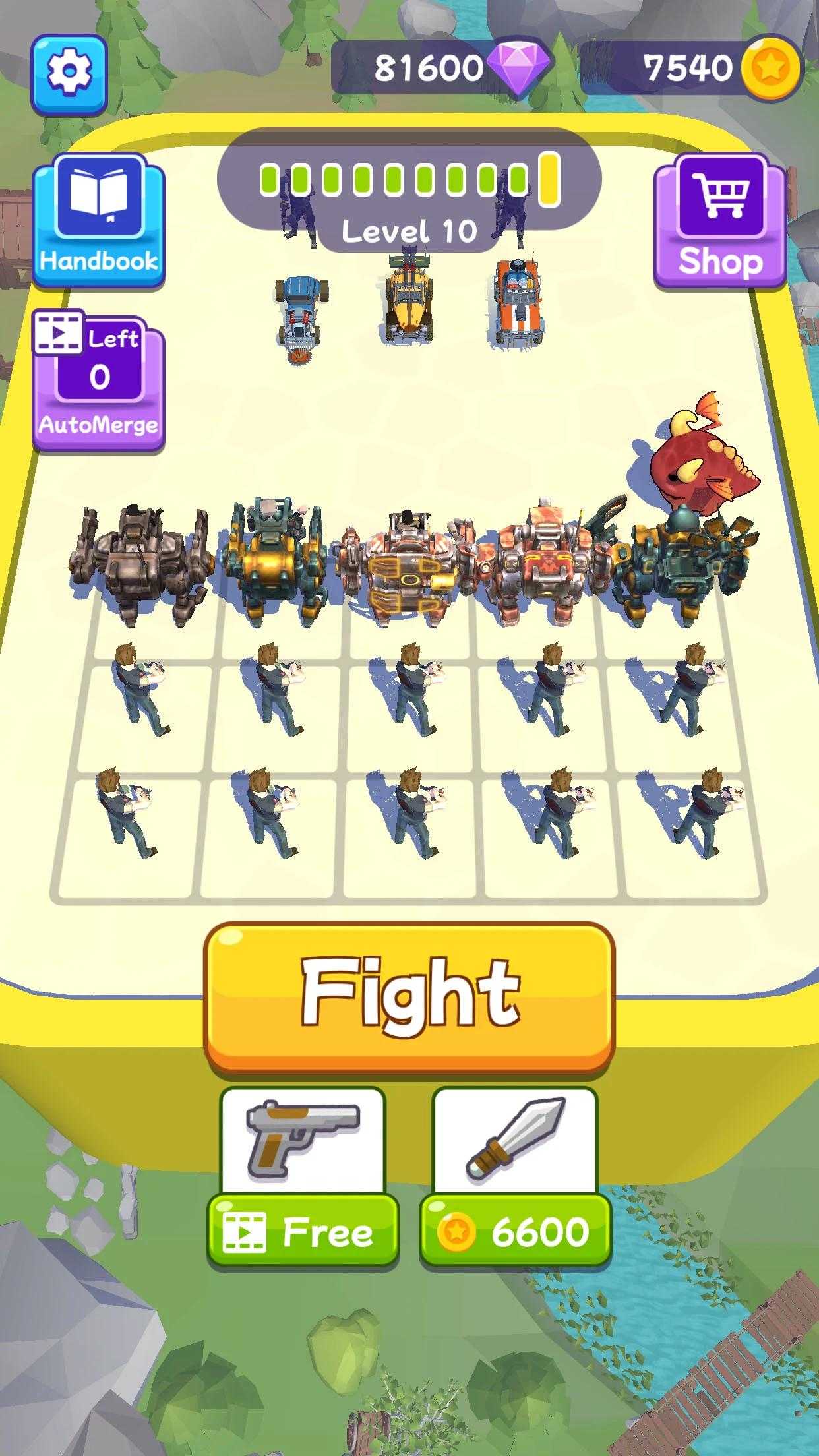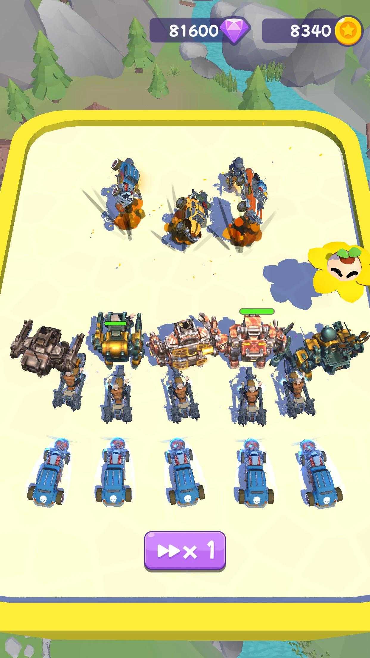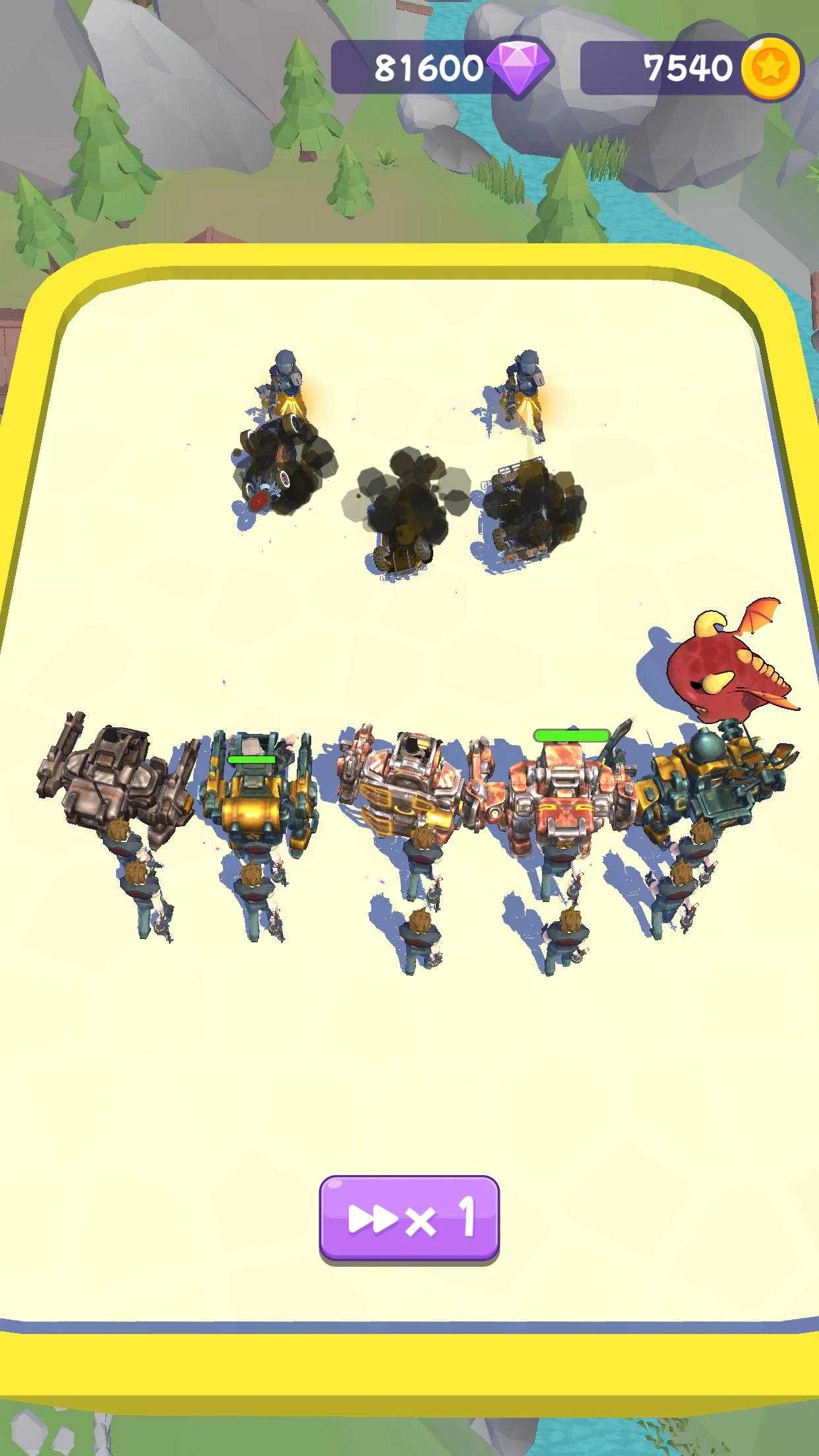 功能: 独特的人物和武器! 奖金和隐藏的机制等待着! 游戏内卡集! 令人满意的游戏体验! 游戏性: 招募机甲或卡车。 合并你的单位来升级它们。 你的资源是有限的,所以要明智地使用它们!