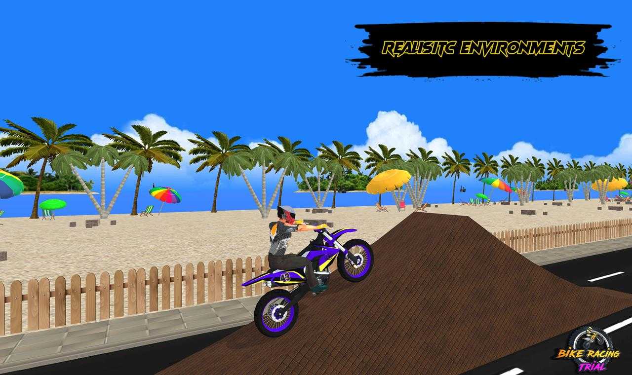 1、《越野摩托车试验》游戏中,游戏采用3D引擎打造,还原一个真实的世界,在打斗的时候画面效果也是非常真实的。