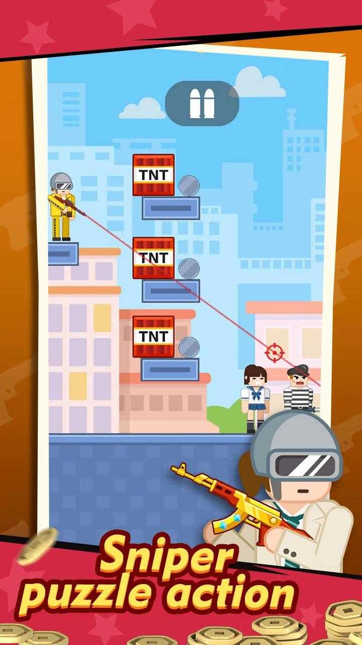 你准备好成为间谍英雄,成为传奇了吗?快来展示你的瞄准精度,体验射击的奇妙吧! 在这个独特的益智游戏中充分利用你的大脑。你需要精确的瞄准和极度的专注来放倒敌人,拯救人质,并使用独特的武器来对付你的敌人。现在就开始你的冒险吧!你要问自己:你能一击制胜吗? 游戏功能: 1.消灭敌人,拯救世界!使用你致命的准确性和精确性来摧毁你的敌人! 2.射击弹弓,弹跳或直接**!击落物体,并用你的**引爆它们。制造连锁反应,千方百计击中目标! 3.新的挑战摆在面前,拯救人质,只要记住,每一枪都很重要!