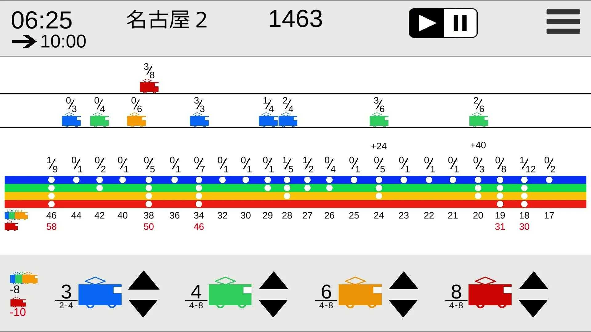 变成日本的铁路公司,挑战世界上最繁忙的通勤高峰! 玩 "东京列车 "不需要任何铁路知识。 这个游戏是一个规则简单的脑力游戏,但需要大量的脑力。 顾客们在车站等待着火车的到来,把他们送到目的地。 启动火车,运送你的顾客。 每一位登上火车的乘客,你都能赚到钱。 调整运行间隔和车厢数量,以达到最高收入。 发出列车要花钱。如果你发的火车太多,登车率下降,你将失去收入。 操作方法非常容易,规则也很简单。 你所要做的就是调整火车车厢的数量,让火车在最佳时间出发。 随着游戏的进行,快递票价也会出现。 完全不需要技术知识。 喜欢火车的人和喜欢游戏的人都能很快理解并享受游戏。