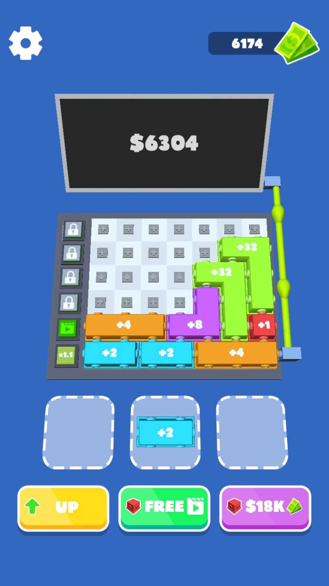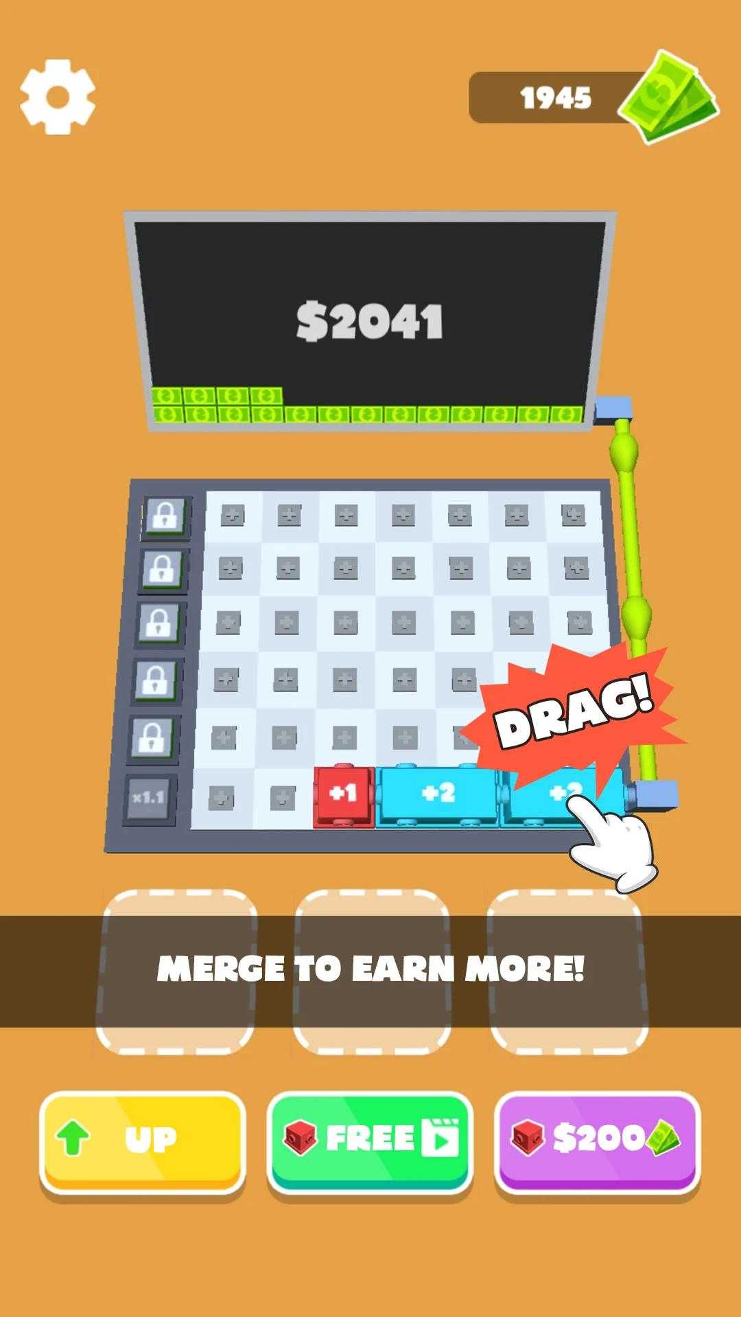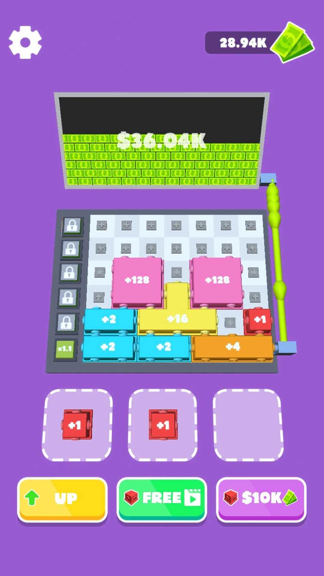合并和放置按钮,只需点击,你会得到奖励 用你自己的键盘创造钞票并填满屏幕。 点击享受!!