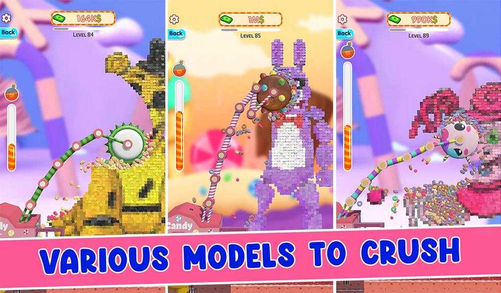 你有没有梦想过生活在糖果王国或者砸掉摩天大楼? 那么这个游戏是给你的。你将得到一份解构者的工作,在短时间内分解100座伟大的建筑。 你准备好迎接这个挑战了吗? 这里我们有很多东西要打破:Huggy,Kissy Missy,Freddy Bear,等等 没错,你没听错,我们有很多奇怪的东西让你用各种各样的电锯分解