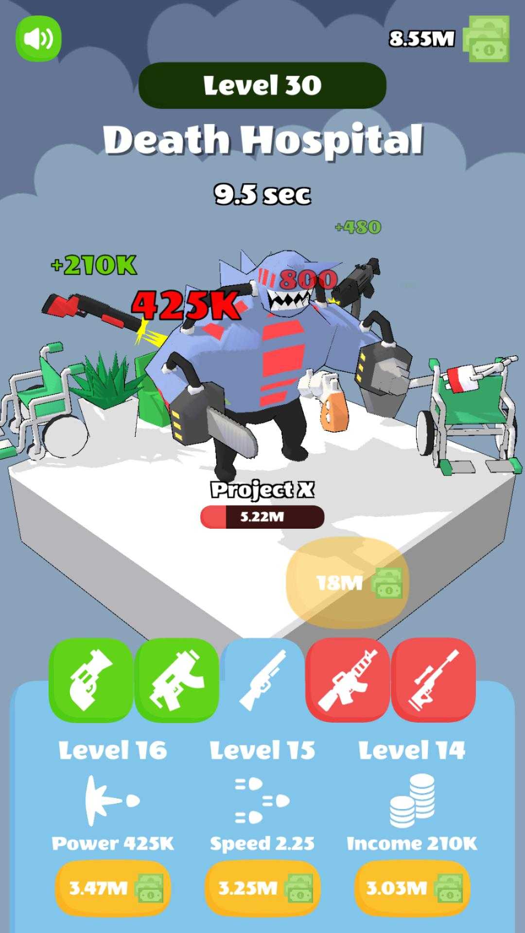 有许多不同类型的怪物,越难杀死,你可以赚更多的钱。 怪物会随着每一关变强,挣钱,**,升级,全部枪毙。
