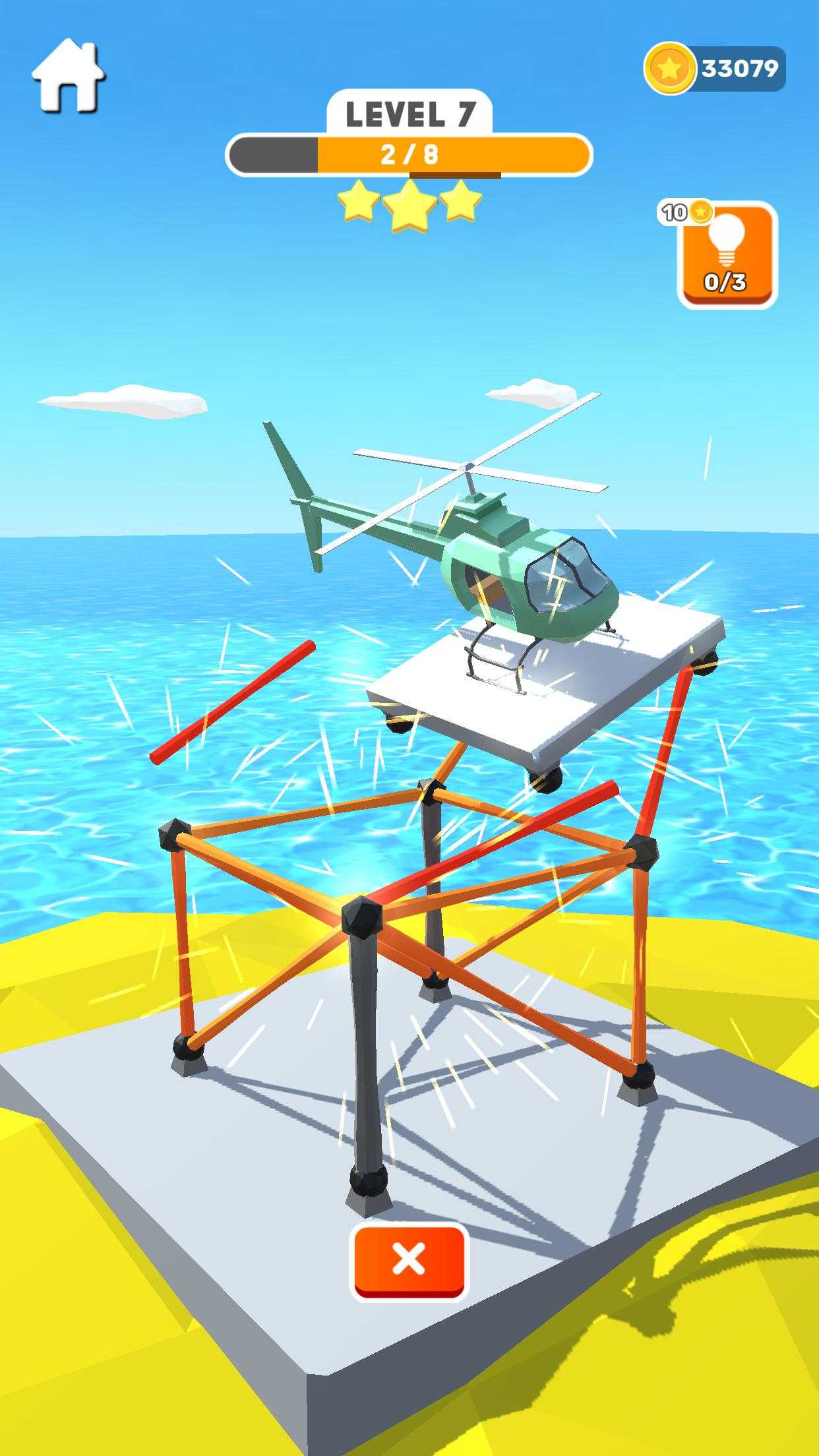 1、《搭建高手》游戏中,玩家通过关卡的时间越少将会获得越多的游戏奖励并且还有额外的道具提升给予给玩家。