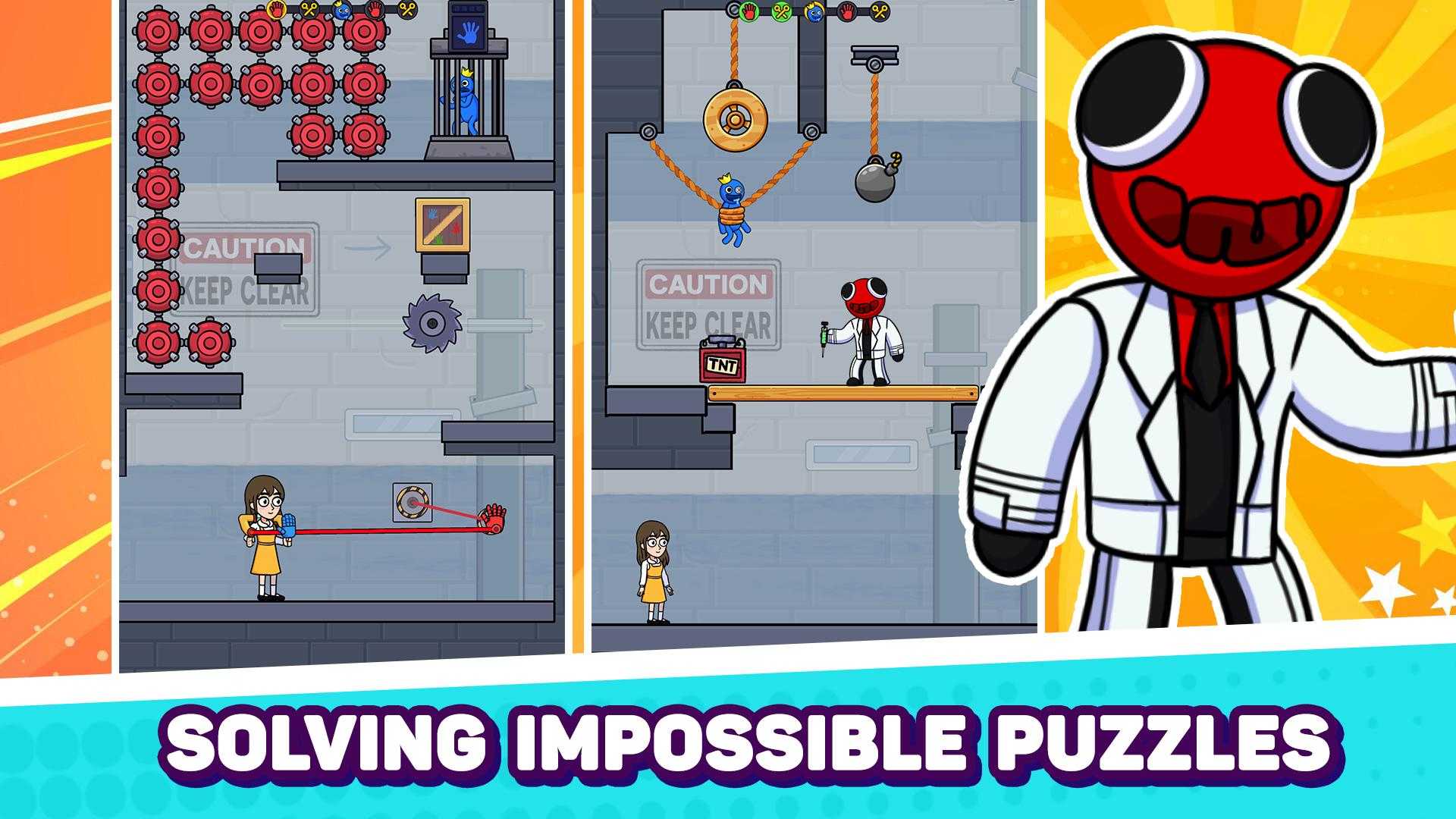 欢迎来到古怪世界 蓝色,绿色,橙色,紫色,红色!你喜欢彩虹的所有颜色吗?如果他们在现实生活中成为你的朋友呢?彩虹伙伴!彩虹佬! 享受这个没有彩虹怪物的恐怖游戏。他们不是Huggy Wuggy,妈咪长腿第二章,熊Fedy,**婴儿或任何可怕的怪物。他们超级友好。 这不是那种经典又无聊的益智游戏。这是一个新的,免费的,很酷的游戏,适合所有的男孩和女孩,他们都是彩虹男孩游戏的粉丝,想要用怪物猎人来挑战自己。在彩虹怪物挑战:生存大师游戏中,使用grabpack逃脱其他怪物朋友的情况。