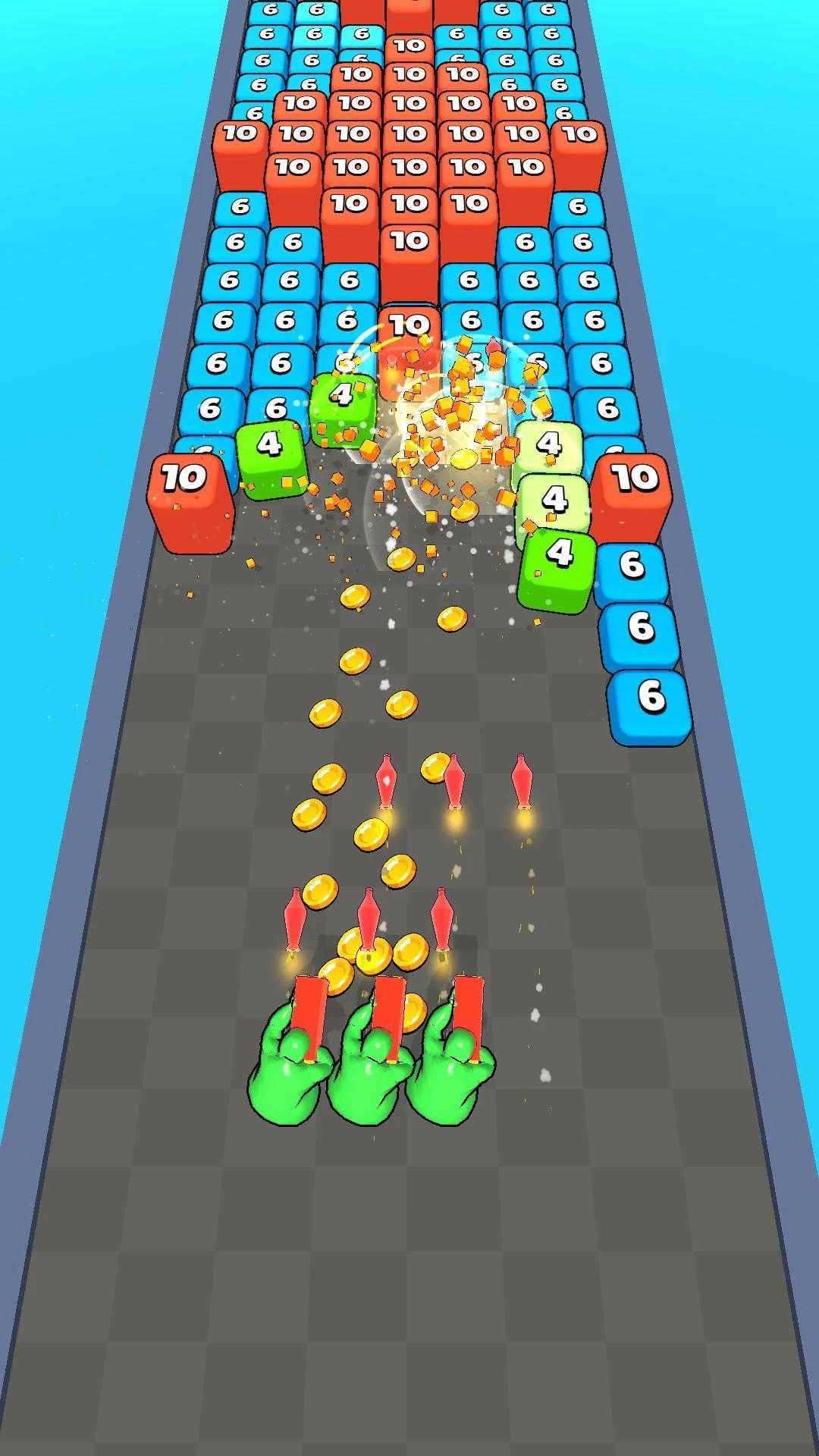 用射击摧毁数字立方体。创建强大的单位以到达终点线。集结最强的部队。
