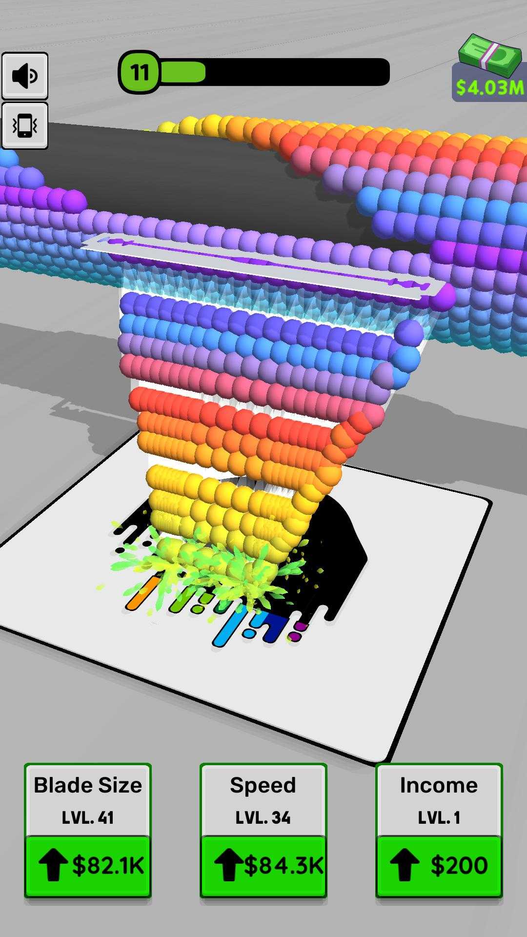 升级刀具的速度和尺寸以更快地落球。画图解锁更多有趣的图片。