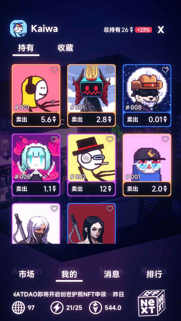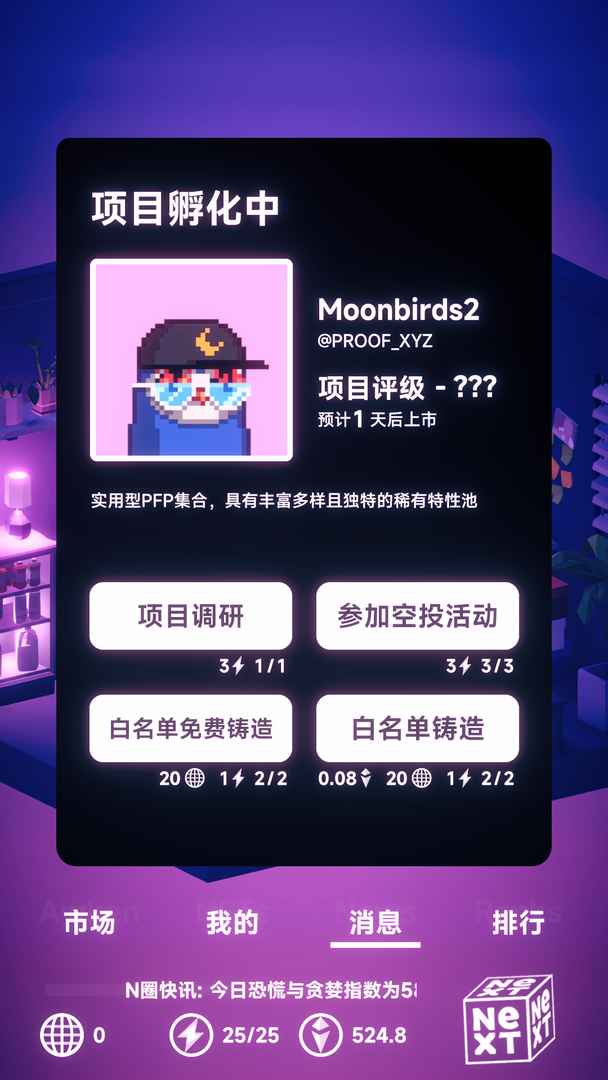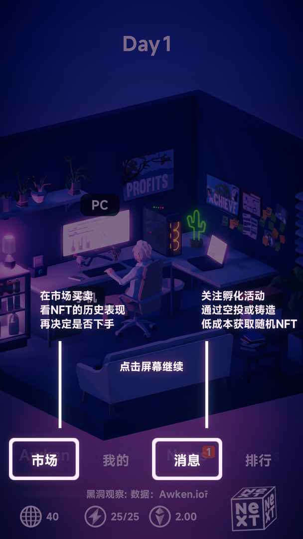 NFT模拟器纯属虚构,让玩家们能够深入浅出的来感受NFT市场,你将通过投资来参与NFT项目,交易,铸造,撸空投,成为NFT大佬,赚得金银满钵。