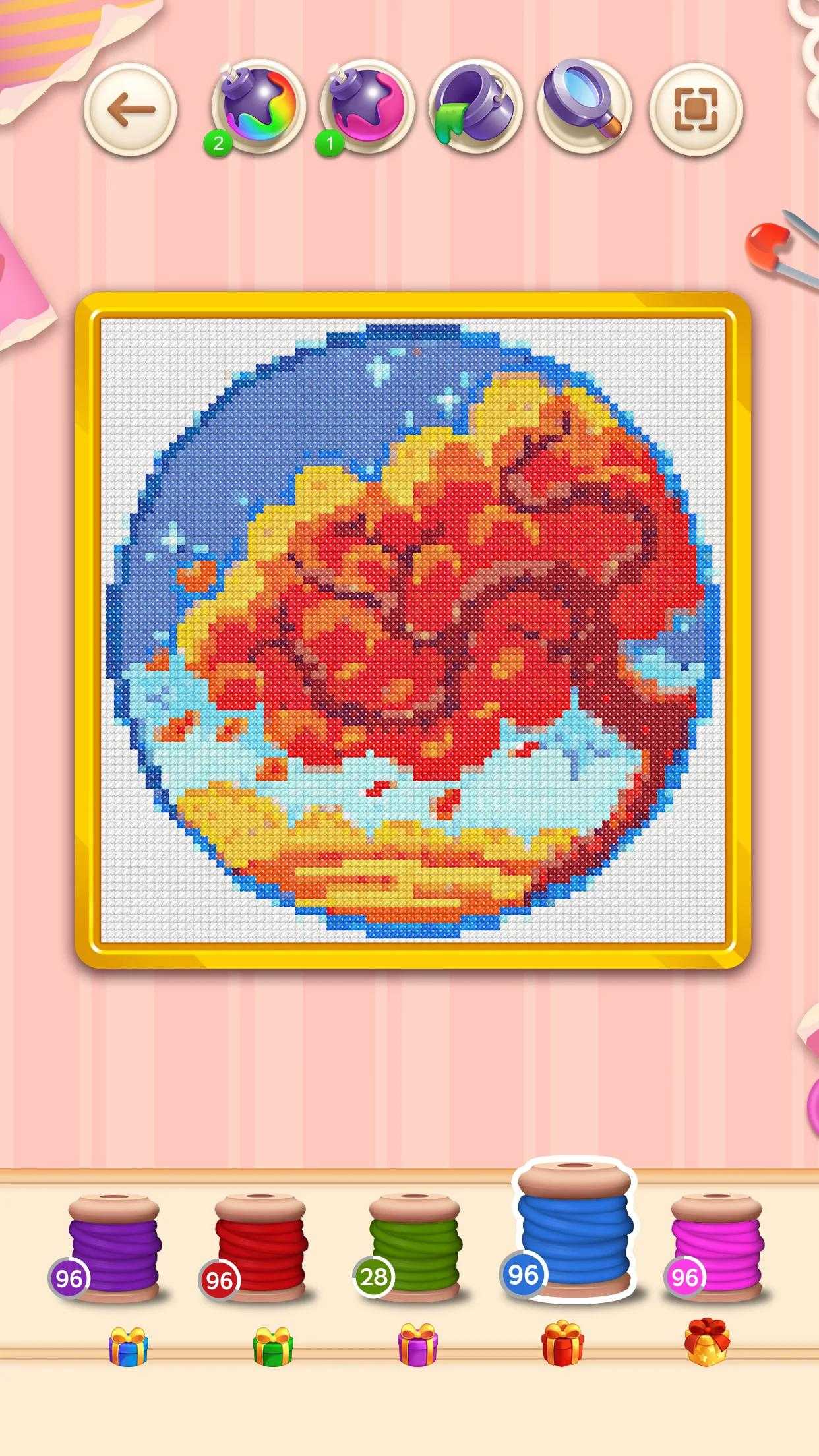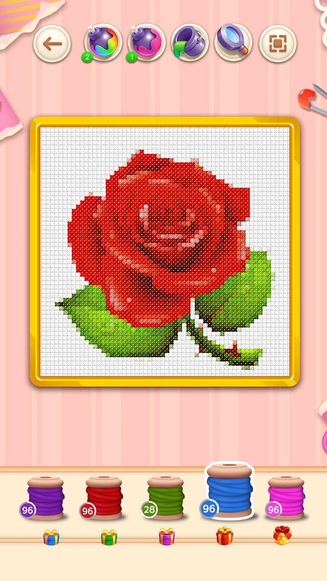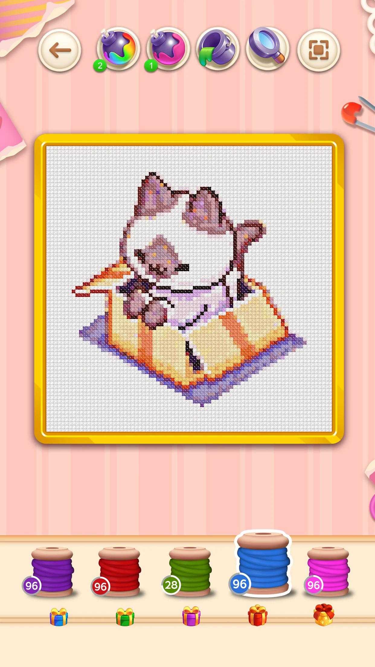 1、《工艺十字绣:像素艺术》游戏中,运用清爽的像素风格画面,操作简单易上手,人人都能快速熟悉;