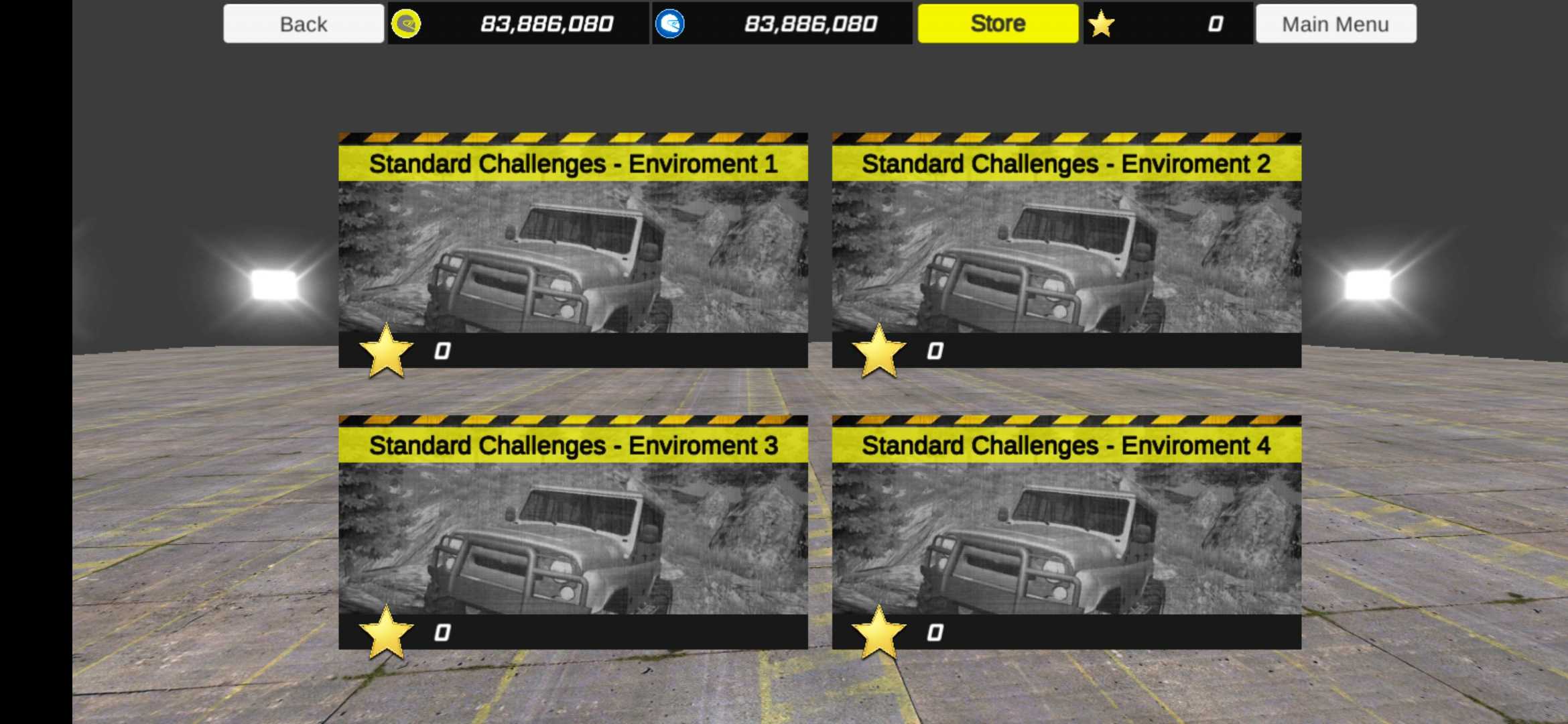 3、制定制的越野车,行驶在山间崎岖的道路上,完成每一关要求的目标即可过关