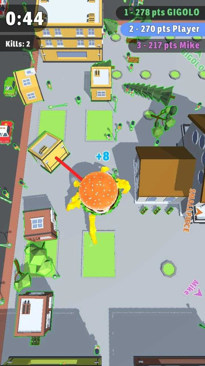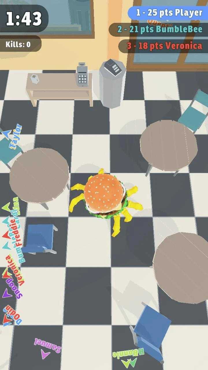 - 使用操纵杆来控制你的汉堡 - 捡起食物,变大! - 吃掉你的对手以获得奖励积分!