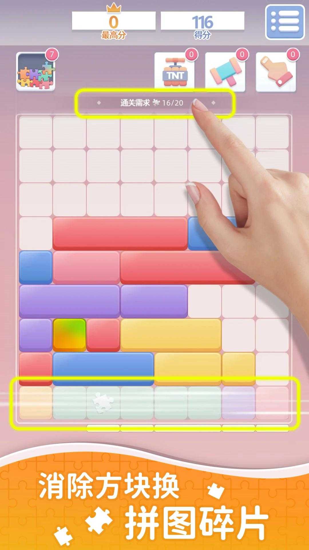 1、《滑砖:世界巡回赛》游戏中,利用想象力,通过旋转方块,把方块变成指定图案即可通关。
