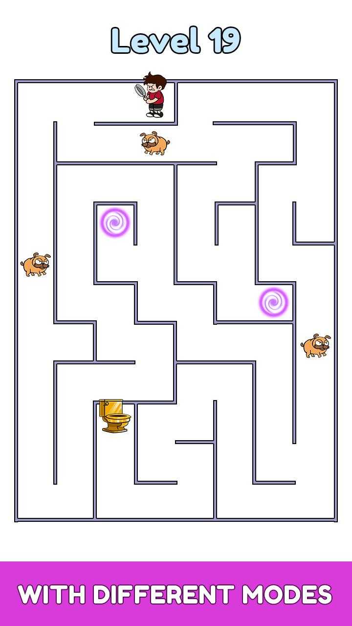 你是迷宫游戏的粉丝吗?你想挑战自己走出迷宫,但不能直接走。你有没有想着急上厕所却遇到迷宫? 滑动手指绘制路径,帮助您最喜欢的角色快速找到厕所。你能引导他走正确的路,按时找到厕所吗?游戏开始。 如果你厌倦了基本的迷宫,这款游戏会给你一种征服神秘迷宫的感觉。但更具体的说,你会体验到每一个关卡都匆匆过关的感觉,因为你所扮演的角色将是可爱的卡通人物,急需上厕所却迷失在迷宫中。 迷宫逃生:厕所冲刺是一款有趣且具有挑战性的迷宫游戏。任务是引导你最喜欢的角色找到厕所。您必须克服麻烦的墙壁并避开沿途的障碍物。输入以下级别,让您的迷宫时间更精彩。