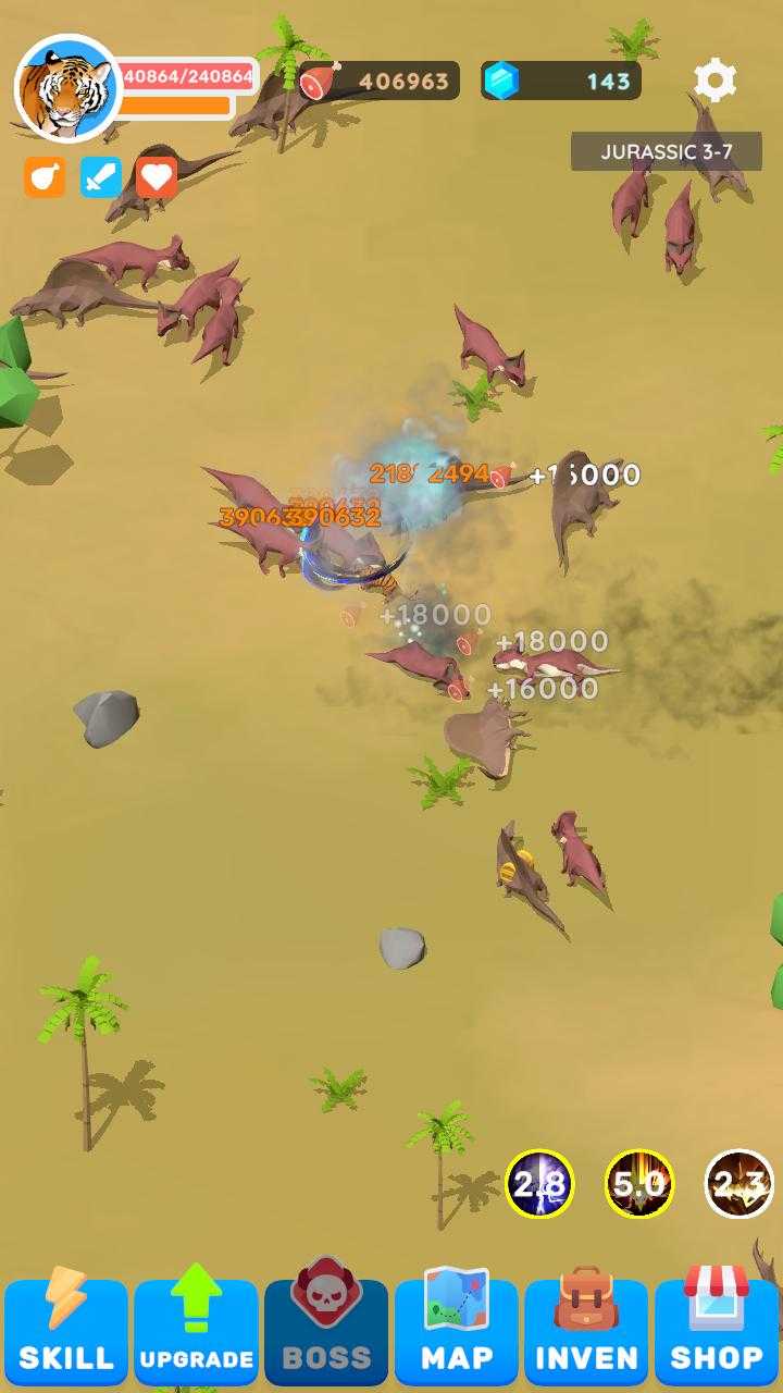 1、《空闲老虎模拟器》游戏中,如果你使用多种技能,必须让你的英雄更加强大