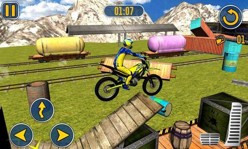 3、游戏采用比较常见的虚拟摇杆控制,左边是方向按钮。《特技摩托车越野赛》游戏2023最新版快来八门神器下载吧!