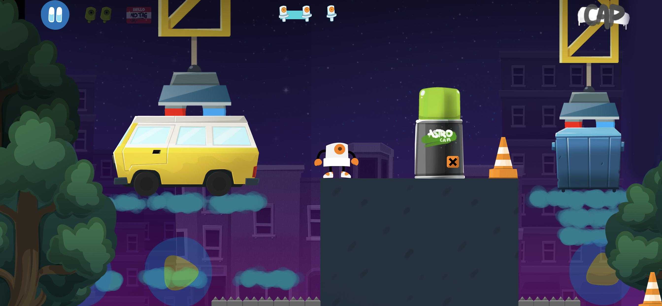 涂鸦时间游戏回来了!胖帽先生正在宇宙旅行以绘制涂鸦。 潜入街道,制作碎片和标签。飞越关卡以使用双跳。 避开试图抓住你的机器人。让街道再次看起来美丽。 乘坐迷你巡洋舰板并进行踢腿以赚取额外的钱。 涂鸦游戏主要特点: - 滑板比赛模式 - 具有挑战性的额外迷你游戏 - 手绘标记模式 - 平台游戏风格 - 炫酷的动画 - 游戏的创作者是现实生活中的涂鸦艺术家。 - 献给所有关于特灵作家游戏的粉丝,现在在您的手机上!