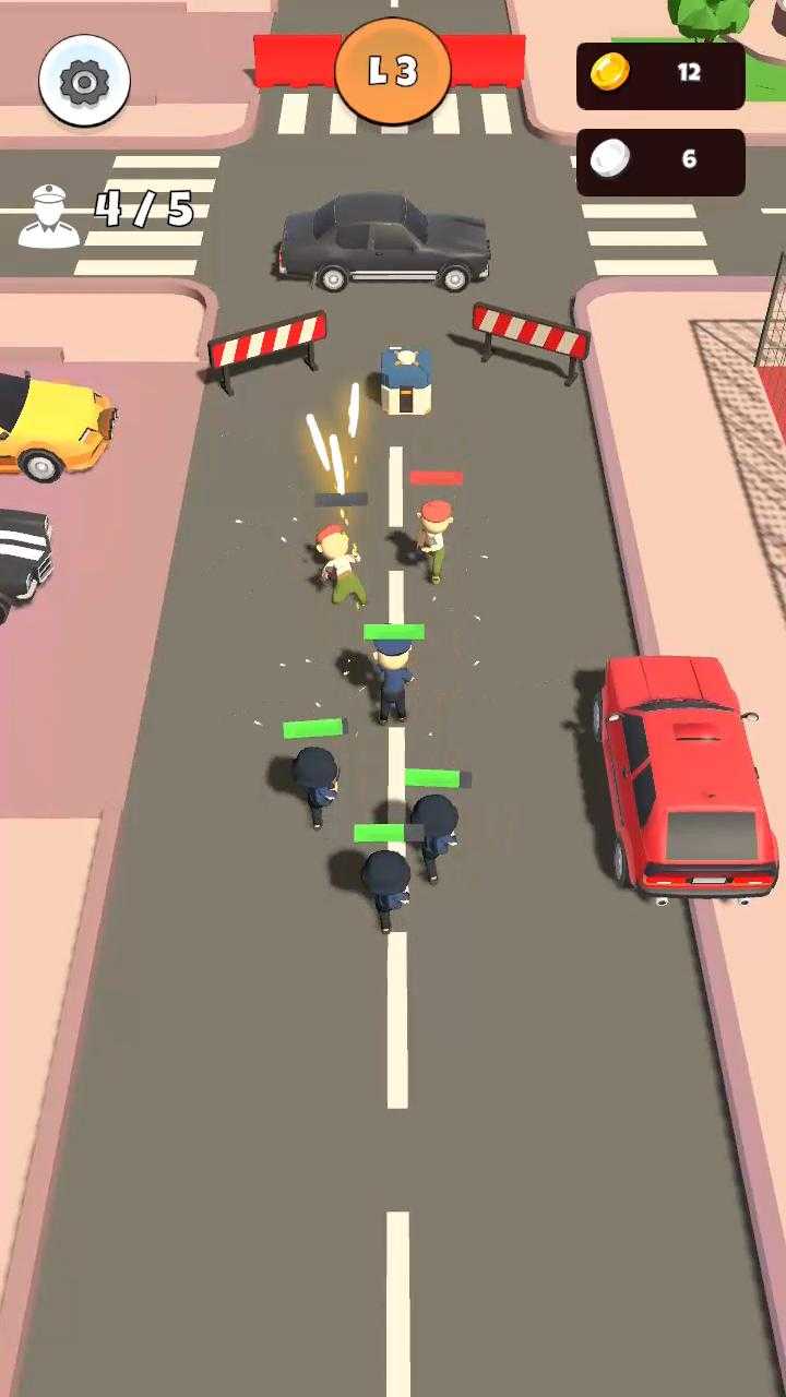 一款有趣的超休闲动作游戏。 1.从战利品箱中收集银币。 2. 通过雇用平民将其转变为**部队。 3. 打击歹徒,确保城市安全。
