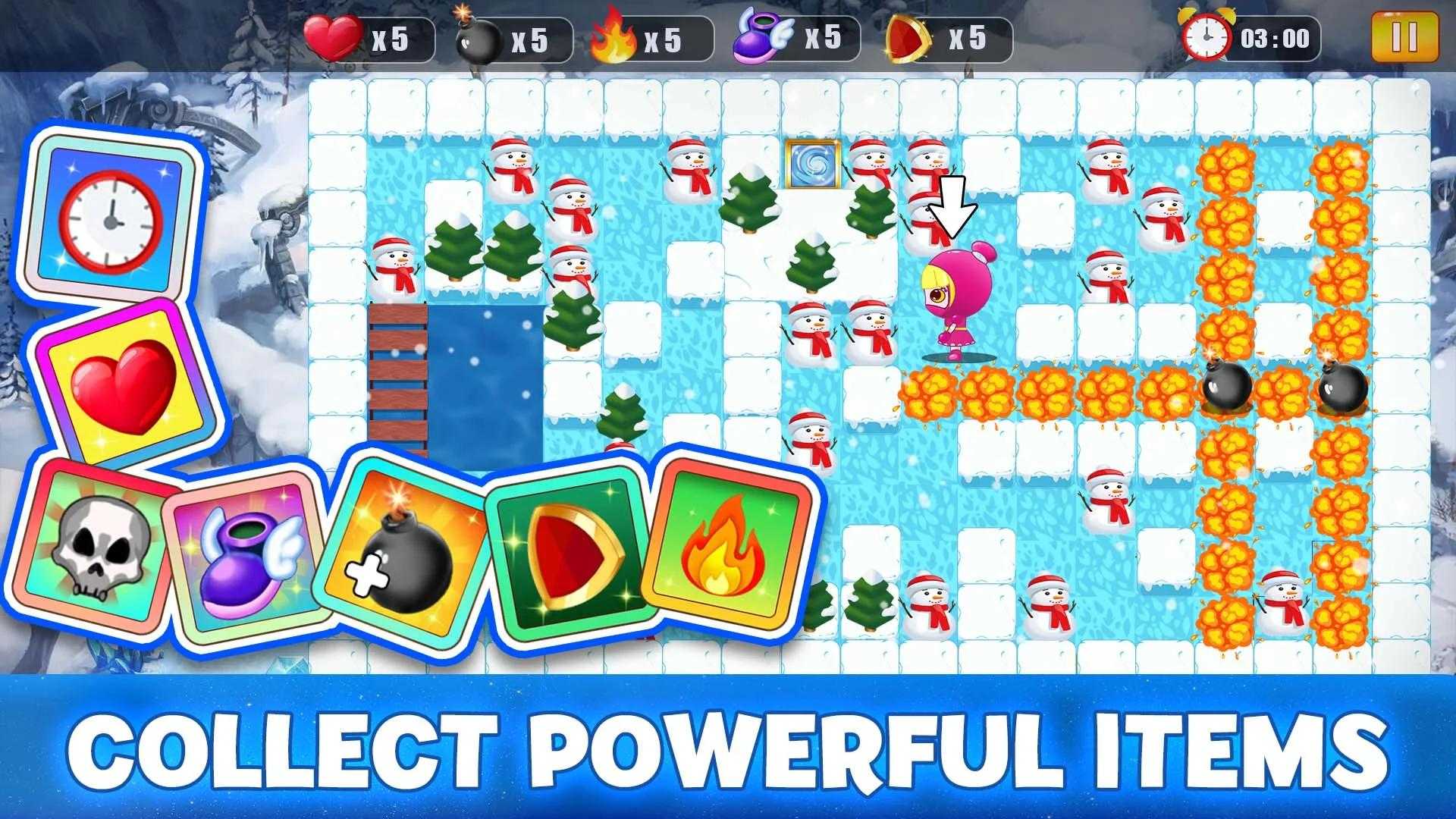 与朋友一起玩轰炸机冒险免费游戏。炸弹大师 逼真的奇幻卡通图形,激烈的战斗和战略游戏,Bomb Blast : Bomber Arena 非常适合与朋友一起玩。 免费游戏 - 离线休闲动作游戏。开发的不仅仅是经典的轰炸机在线游戏风格。 在这场冒险中奔跑、轰鸣和炸毁敌人,以进入下一个级别。 ? 成为轰炸机竞技场王国的主人 ? 摧毁所有障碍物,将敌人置于陷阱中的怪物将被炸毁,敌人将被杀死。用免费动作游戏炸毁敌人。 ?大师以快速思维和聪明动作放置炸弹,以奖励硬币大师并获得奖金,并收集强大的炸弹物品组合。 ? 众多英雄皮肤和炸弹效果 炸弹爆炸时,自定义英雄的外观和炸弹皮肤效果颜色。选择您最喜欢的免费轰炸机英雄,赢得离线游戏的战斗。