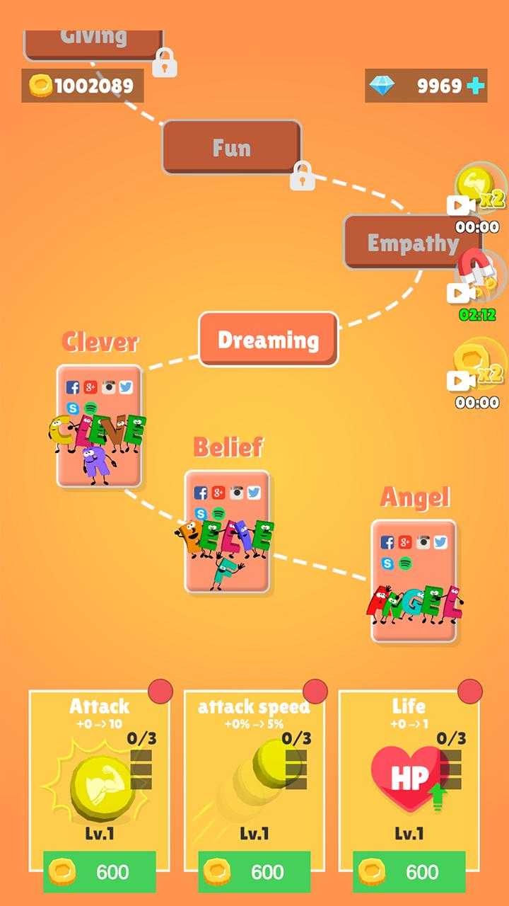 1、《数字游戏英雄生存》游戏中,如果你使用多种技能,必须让你的英雄更加强大