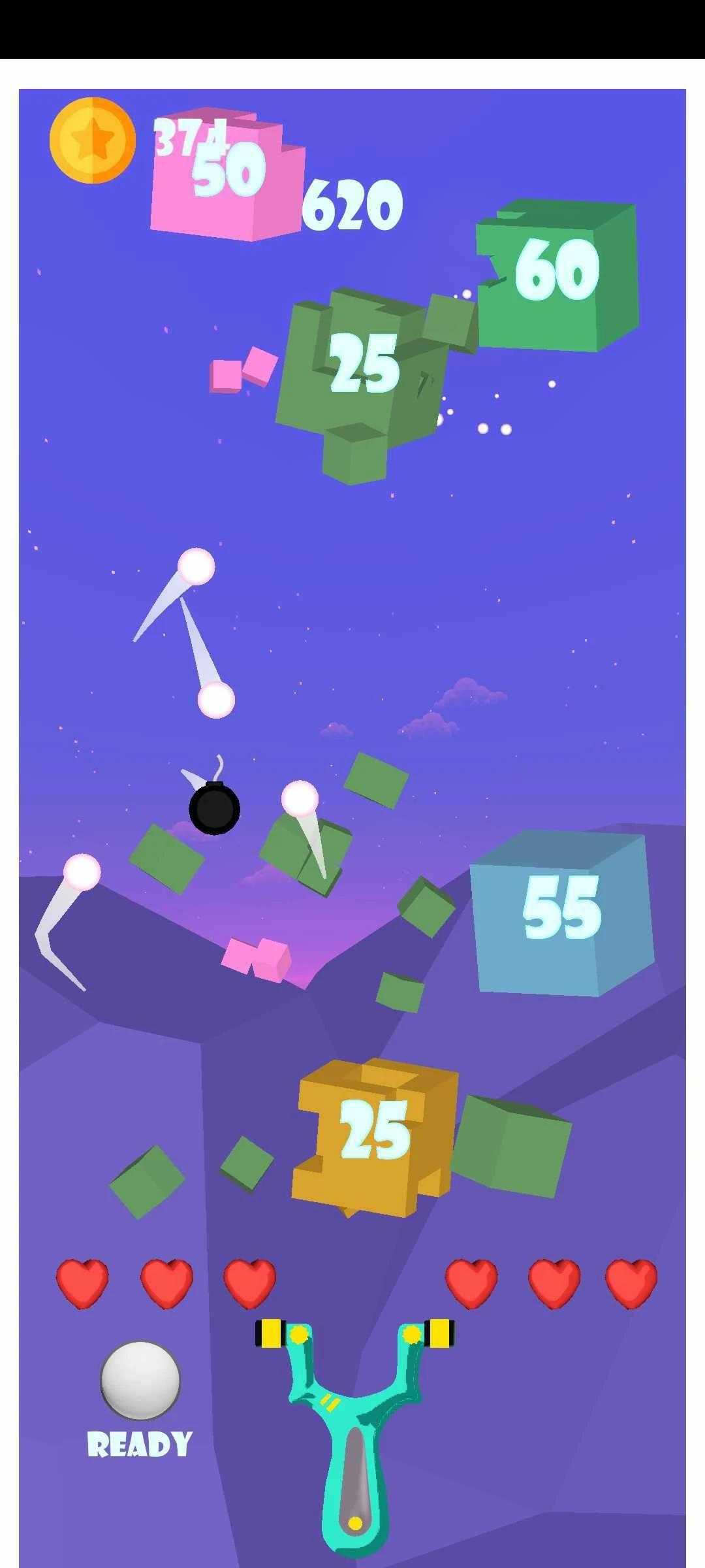 升级你的弹弓和球。通过一连串的立方体射击。你能活多久
