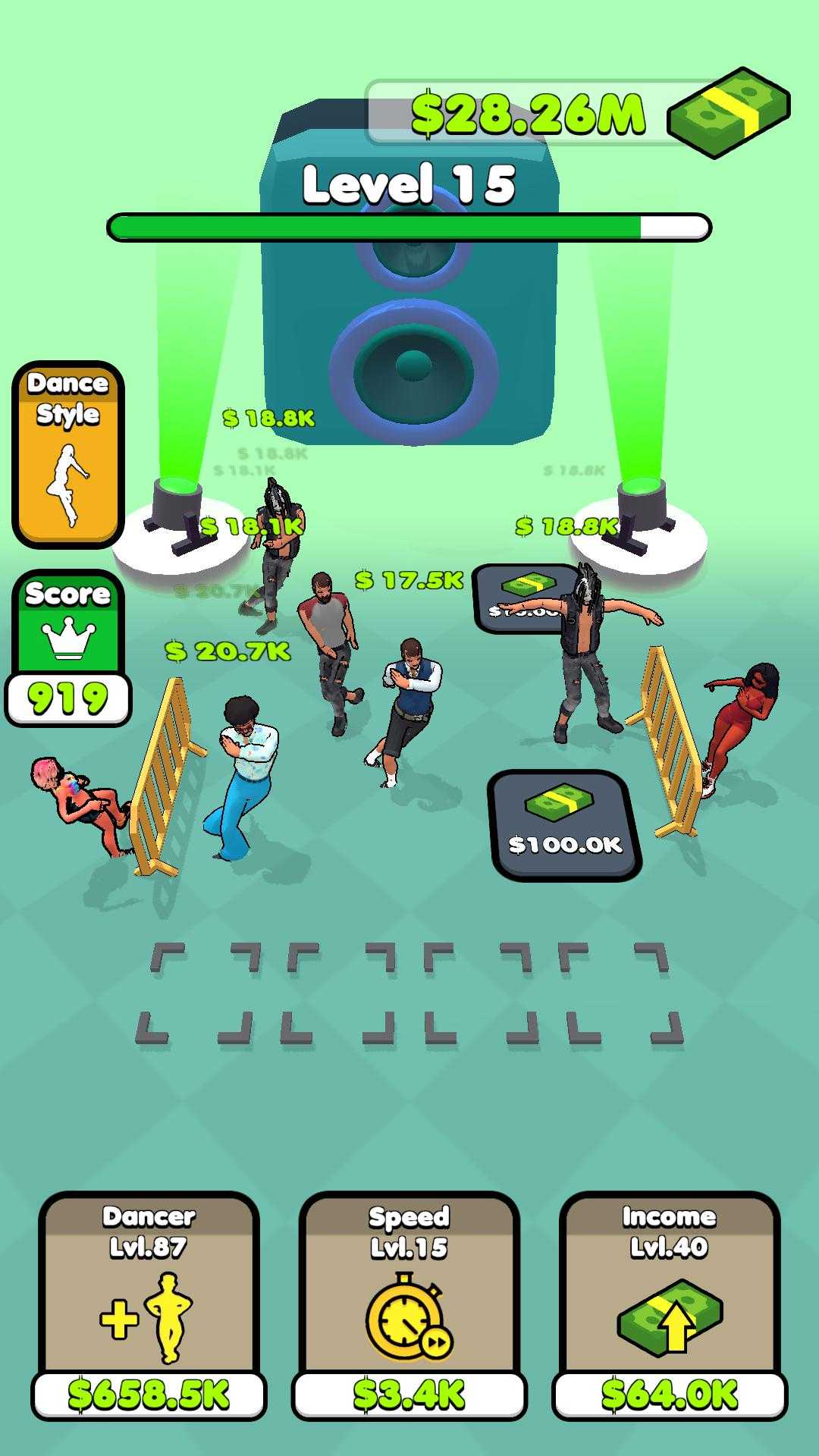 享受迪斯科派对并与我们一起跳舞。 购买舞者,让他跳舞赚钱,玛吉提高技能并赚更多。