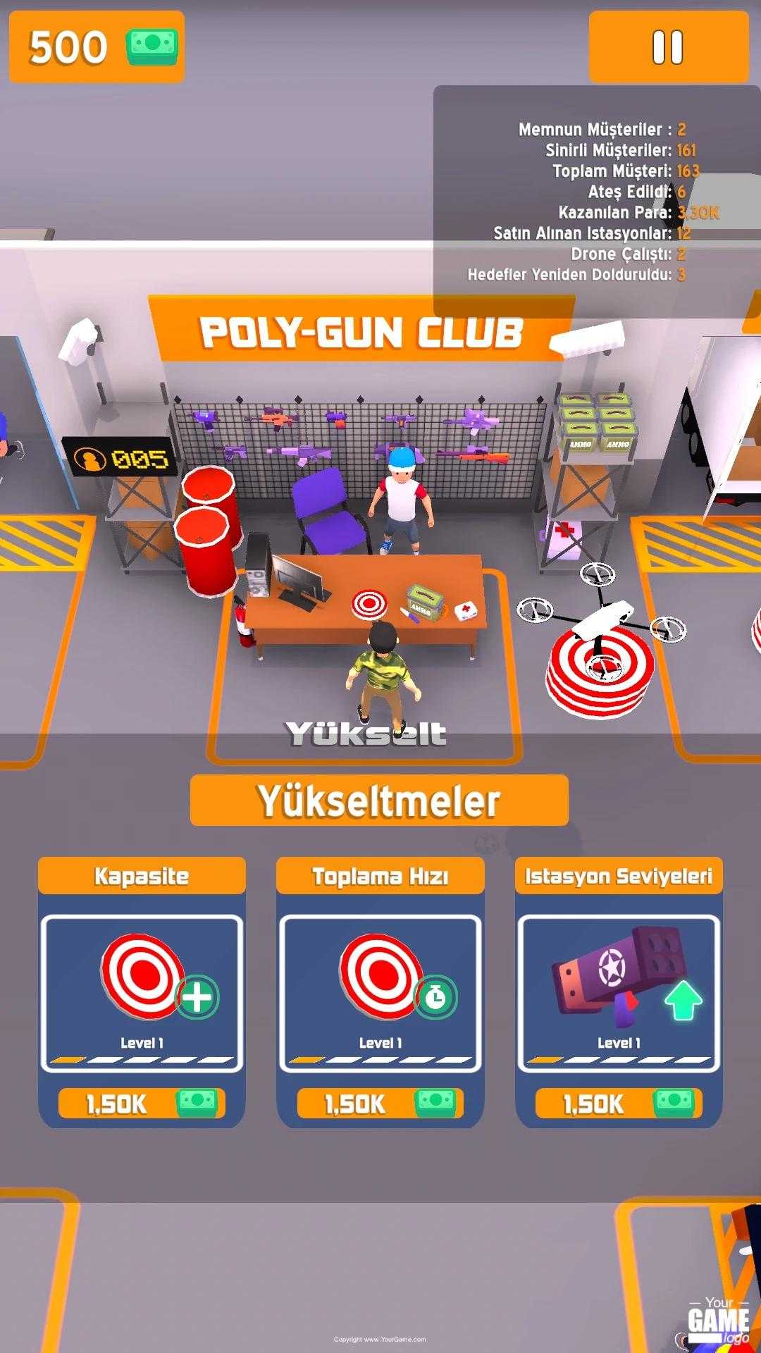 欢迎来到 Poly-Gun 老板,在这里您将建造有史以来最伟大的多边形,并招待所有来到这里尝试一些很酷的**的客户。 收集目标板,将它们带到靶场,您的客户将完成剩下的工作。只是享受观看那些枪同时开火的乐趣。然后,解锁新武器,让您的客户更加努力地切开这些面板,并以令人难以置信的速度赚钱! 当您赚到足够的钱时,您将能够购买无人机,以帮助您更好地完成工作并提升其速度和容量,同时开发多边形并提高自己。 您将能够扩大游乐场并拥有更多射击场,以接待更多客户。有很多方法可以通过奖金收入来源和其他惊喜来赚钱。进入那里并发现它们!