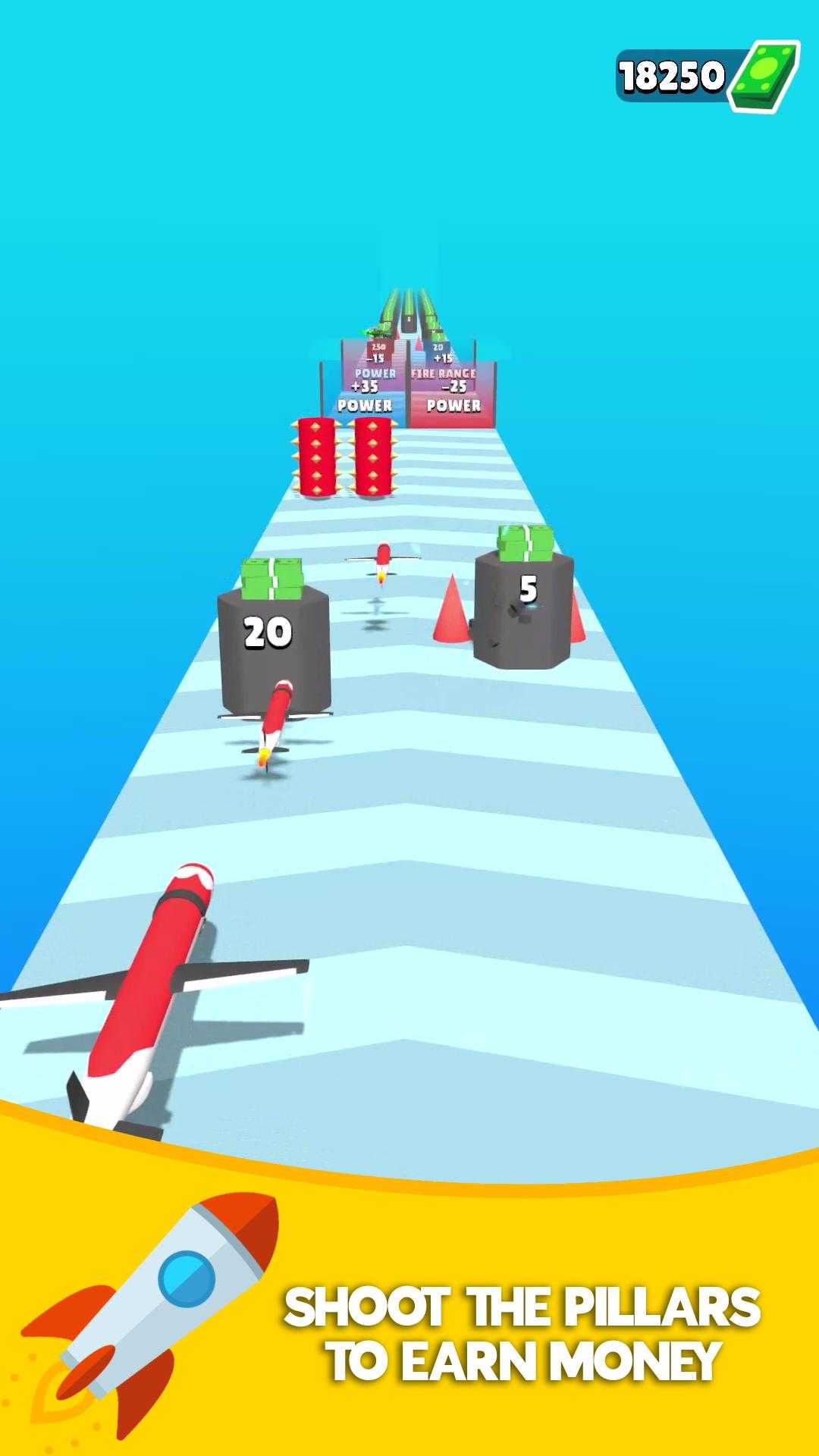 4、一目了然的画面布局搭配舒缓的背景音乐,营造出游戏轻松愉快的氛围;《火箭射击》游戏2023最新版快来八门神器下载吧!