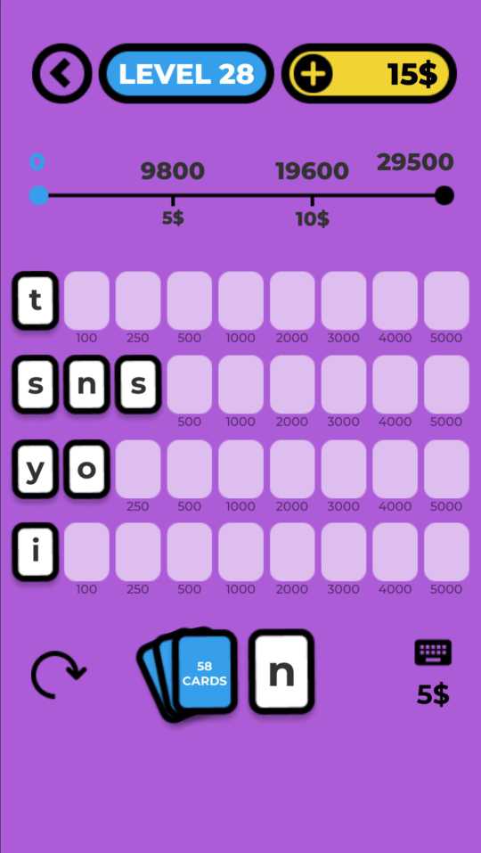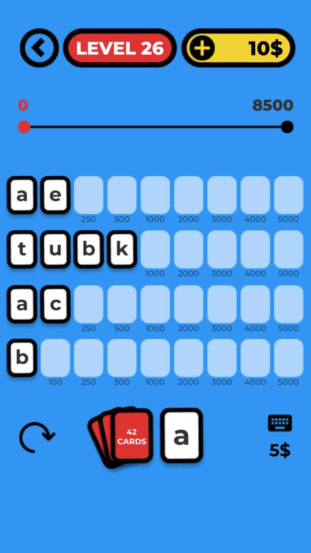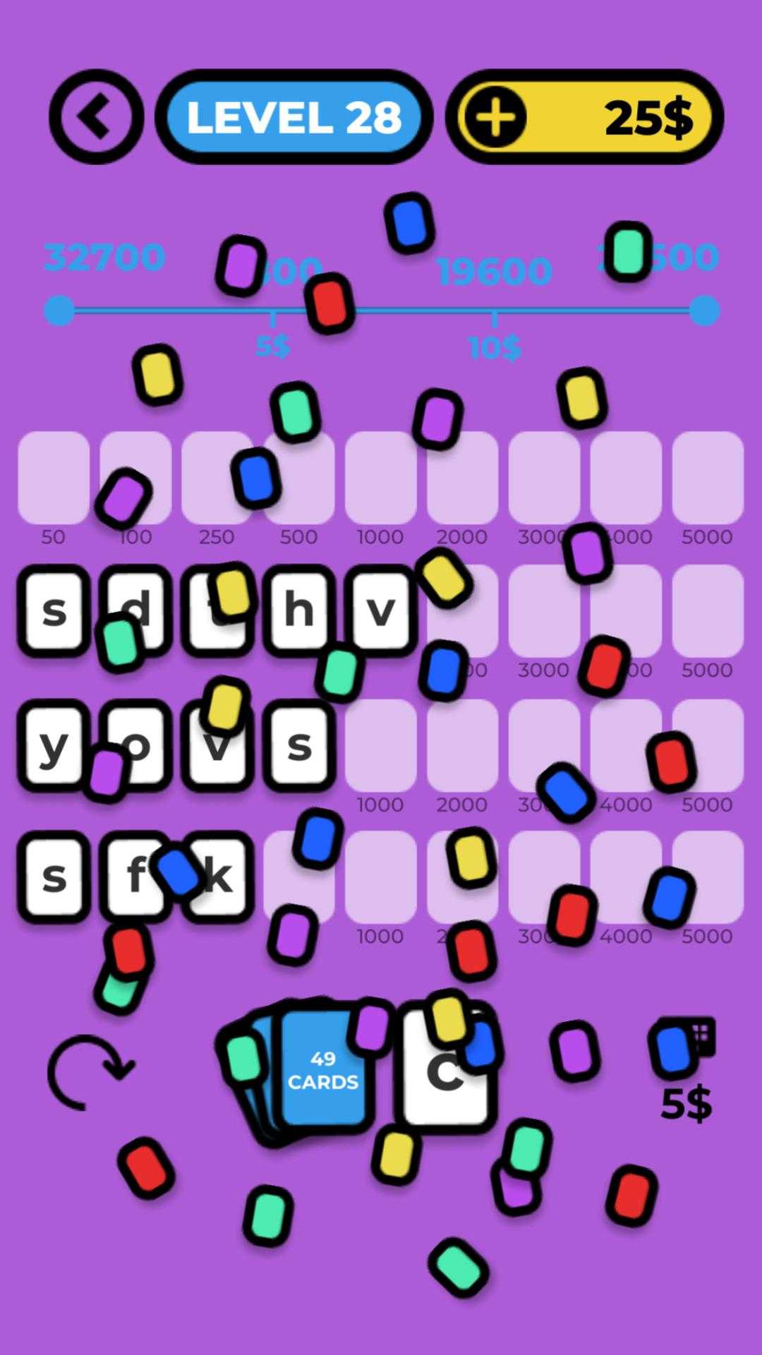 尝试获得所需的分数!为此,您需要从堆栈中的卡牌中收集长单词!