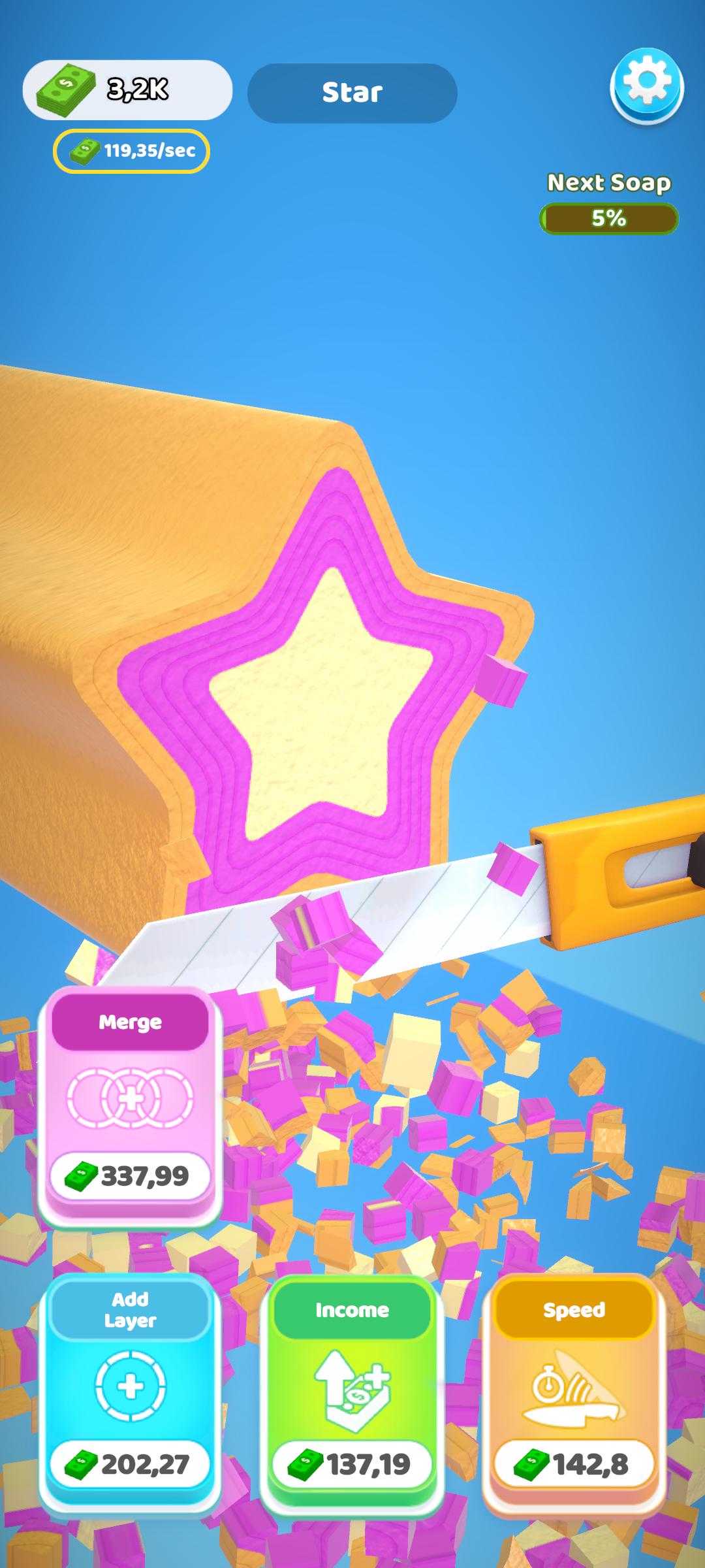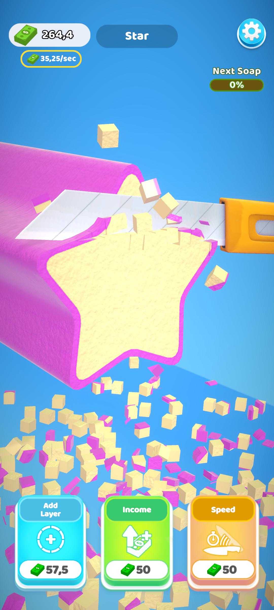 在酷炫多汁的闲置点击游戏中切肥皂的满足感。 制作彩虹肥皂以解锁新的肥皂形状和切割器。