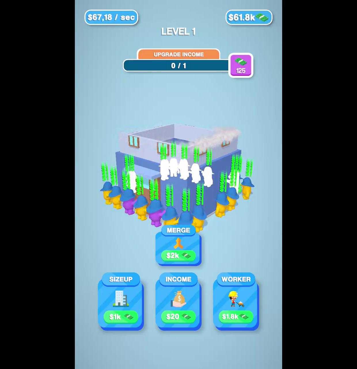 雇用工人建造华丽的房屋 合并它们以更快地构建 赚钱并建造最大的房屋!