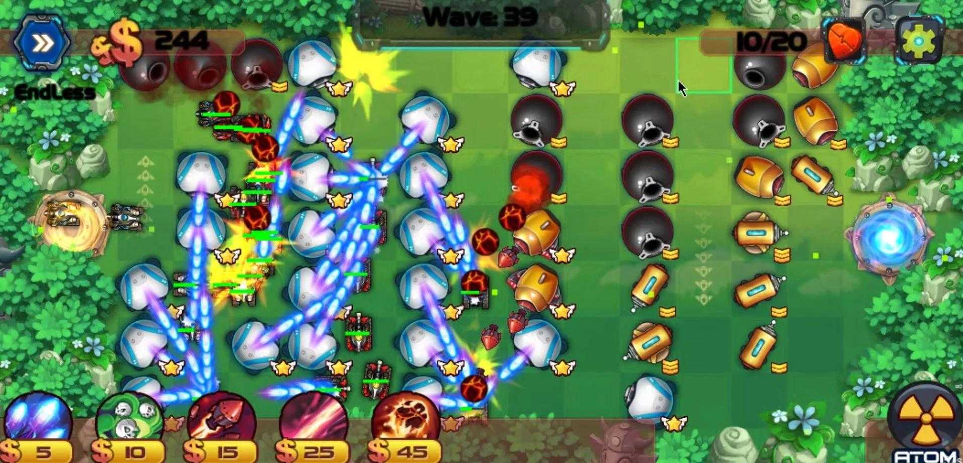在游戏中,您将用炮塔防御大量敌人。