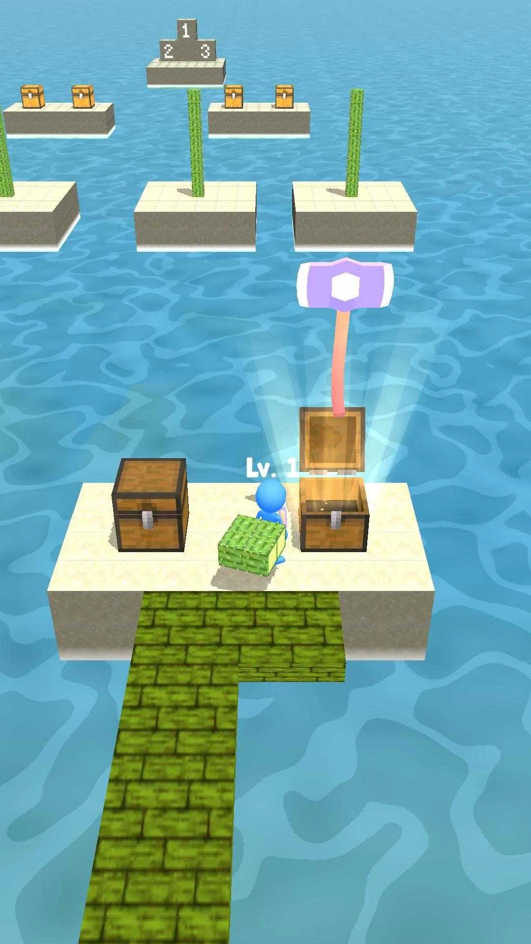 从植物中收集材料并到达其他岛屿制作桥梁。确保你和第一名之间没有任何人。