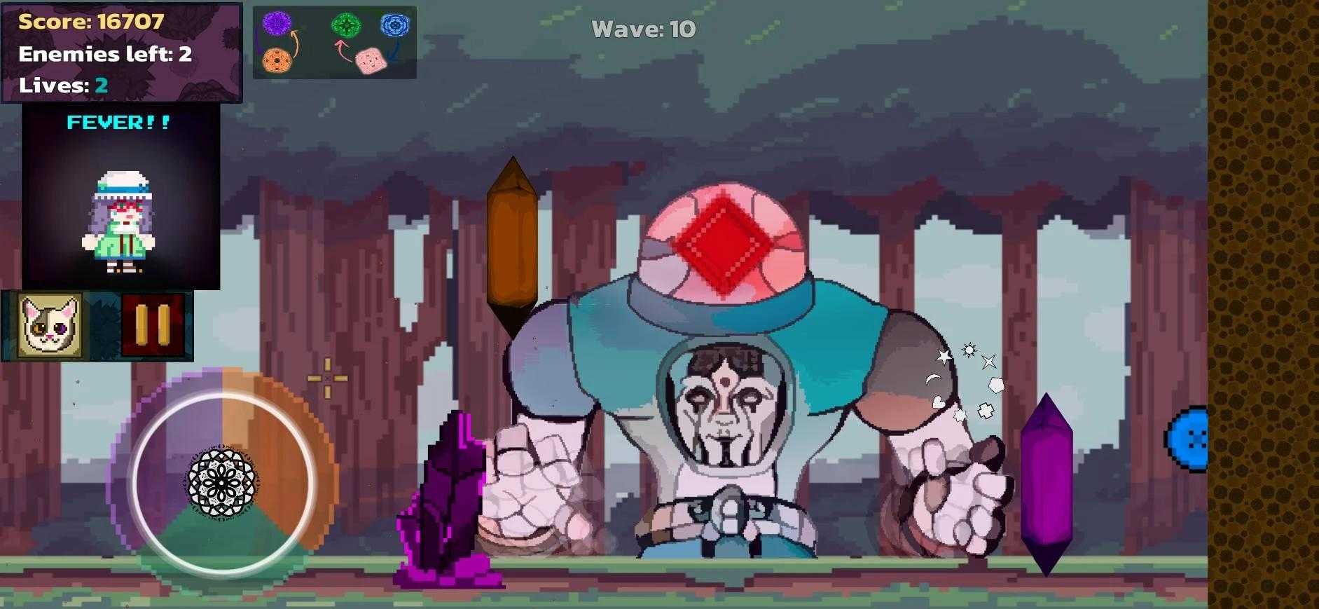 Cursed Colors Remix 是一款**游戏,成功的关键在于通过在攻击时匹配不同的颜色来摧毁成群的敌人。 每个敌人都有它的弱点,利用它来获得优势并在世界上进步并生存。 如果失败,则从头开始。但是,每次失败时,您都可以在商店获得升级,并从敌人那里掉落战利品。 解锁具有独特技能的独特角色,在危机时刻为您提供帮助。