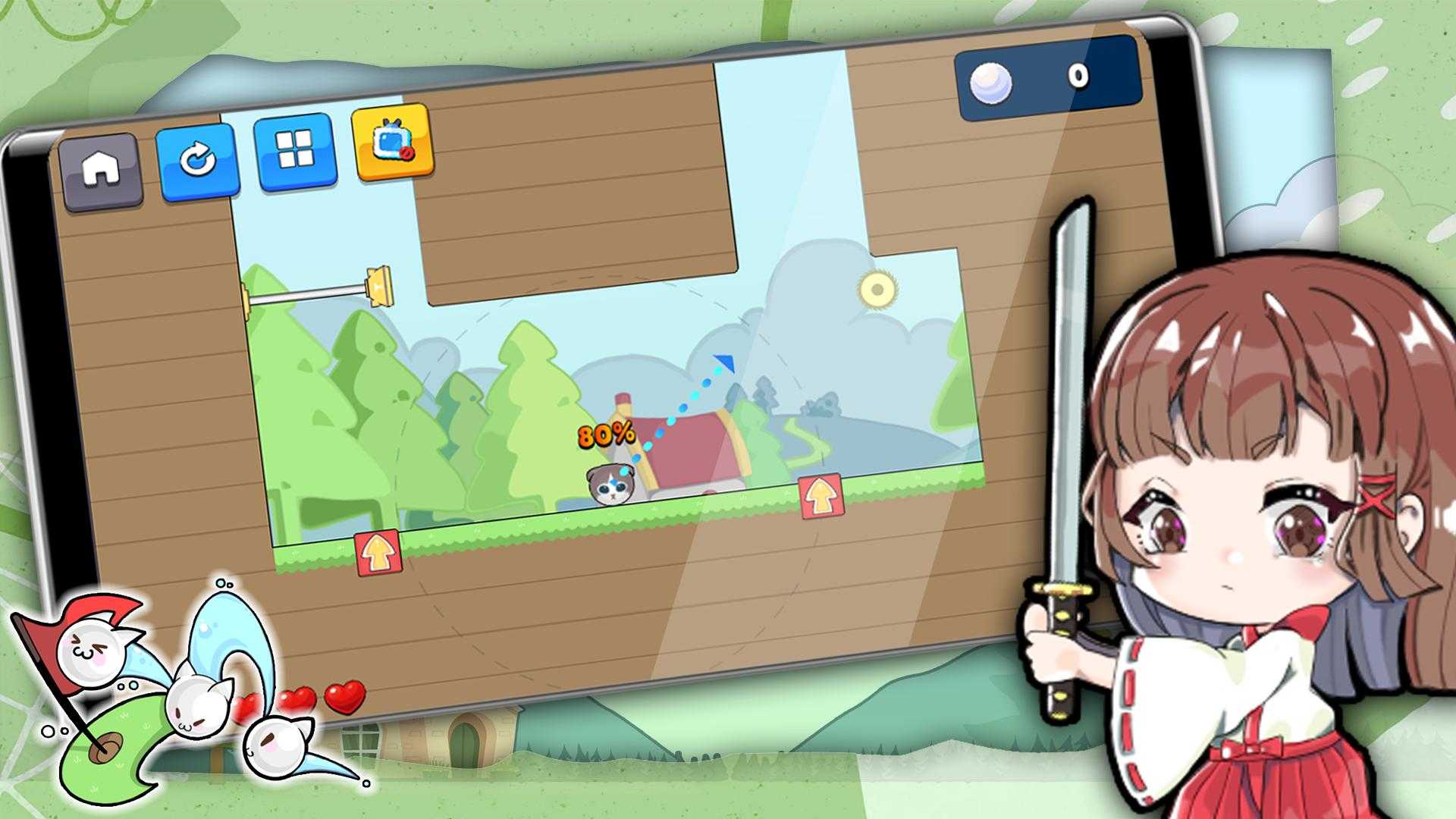 小心!尖刺球来了! 帮助猫咪进洞! 如何玩: 1.滑动屏幕将猫击倒。 2. 避开路上的所有陷阱。 3. 击球并获胜!
