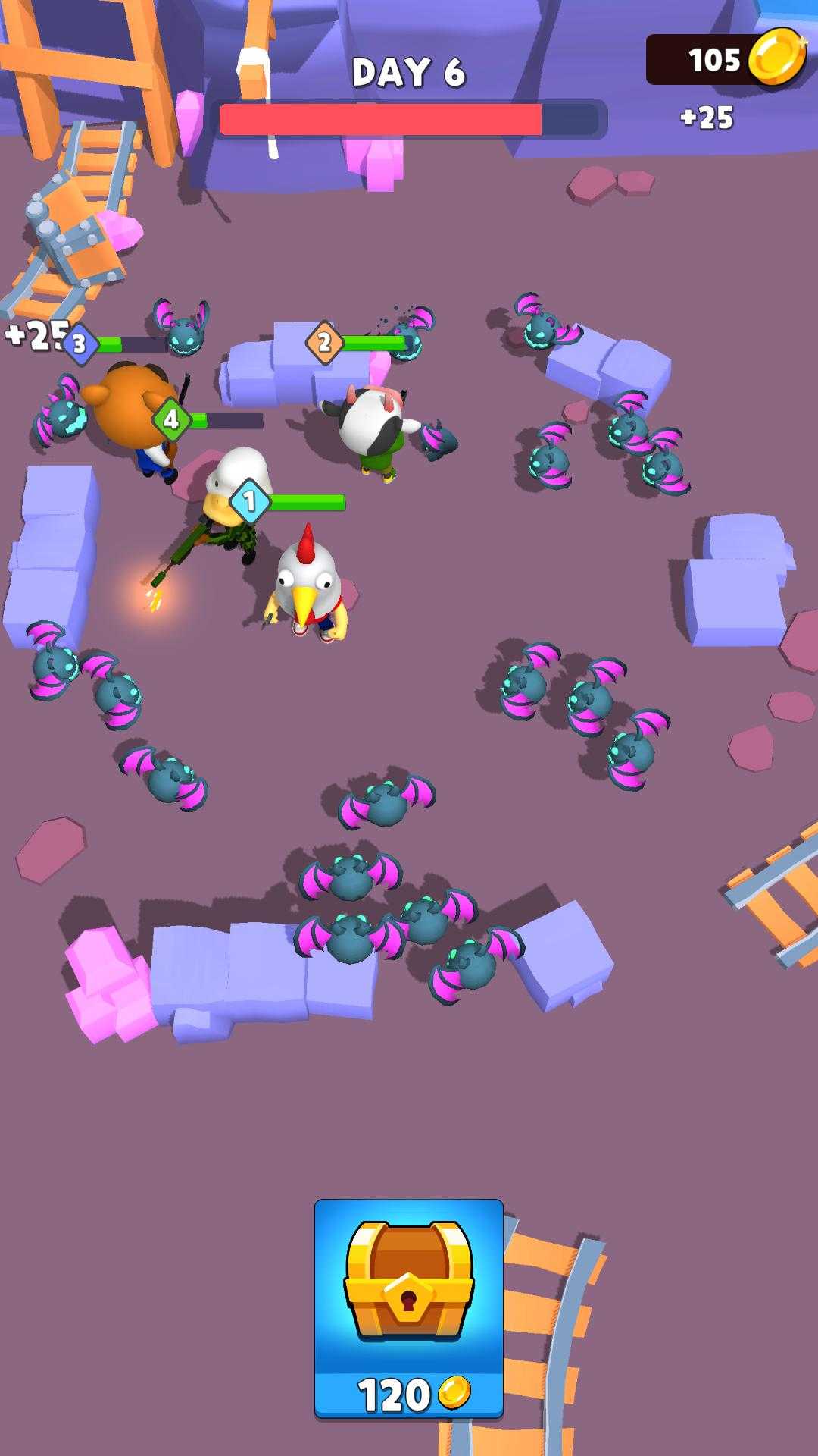 1、《合并小队》游戏中,为了让自己生存下去需要不断的去收集各种武器装备的哦,用来消灭所有的怪物;