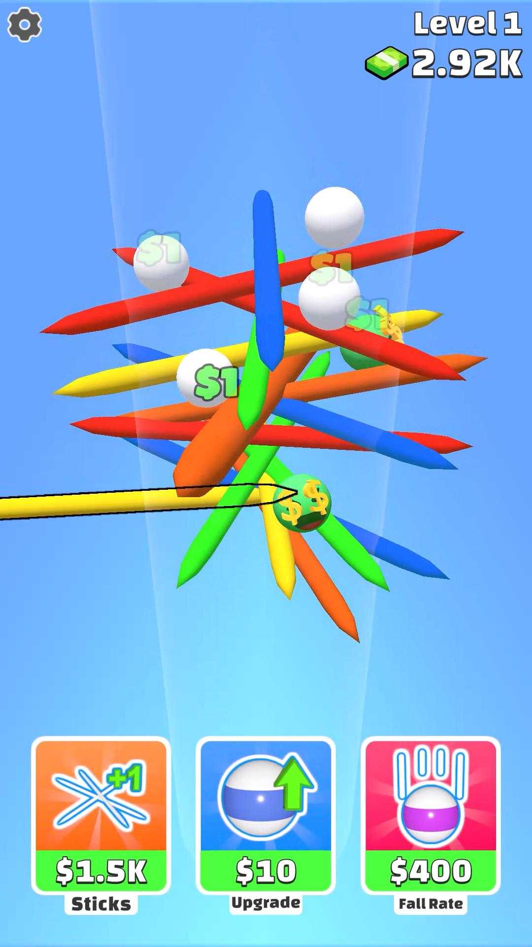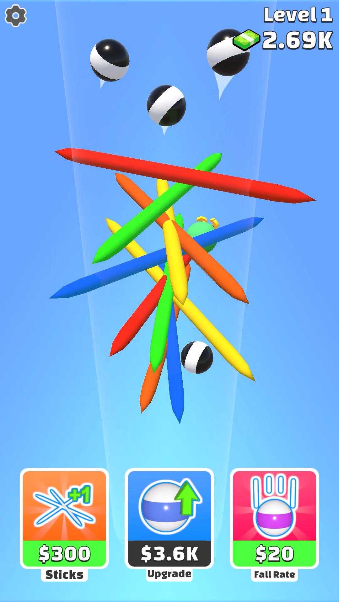 **棍棒并举起球!随着球弹跳,赚取越来越多的现金! 战略性地放置棍棒以获取最大利润!