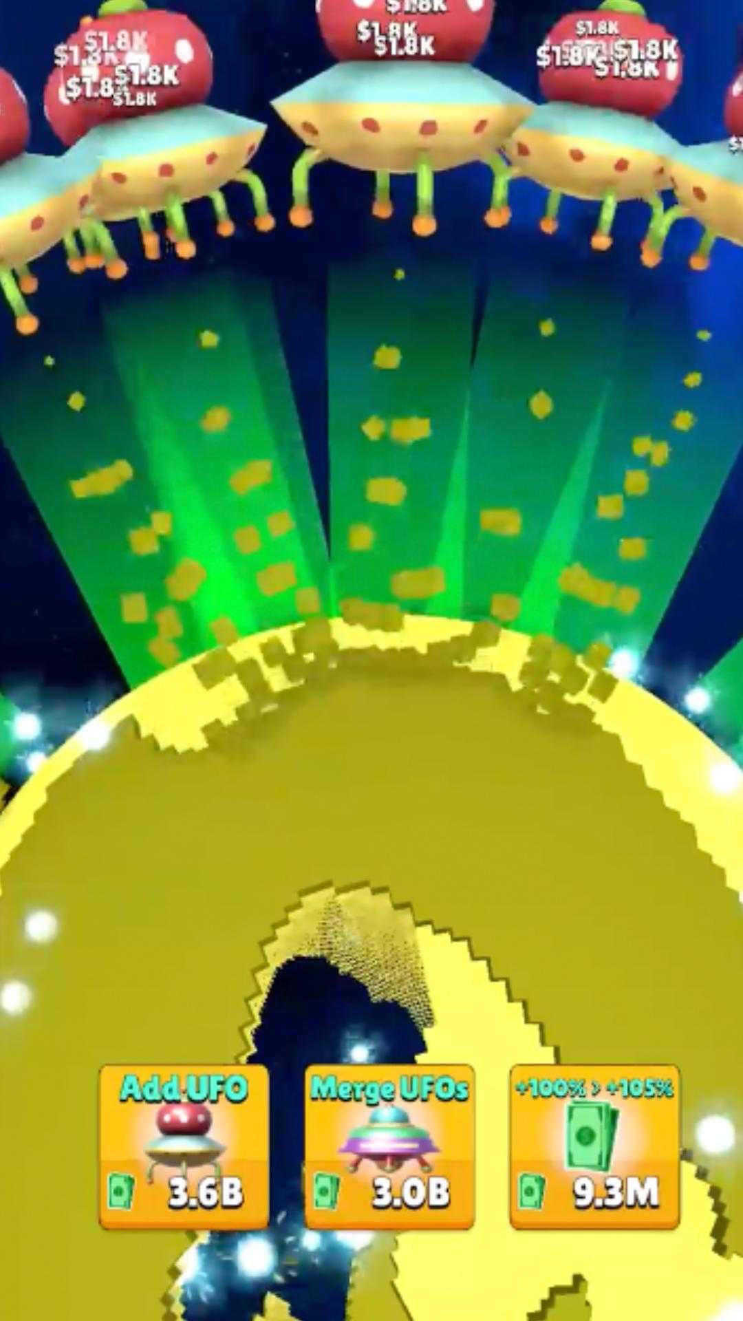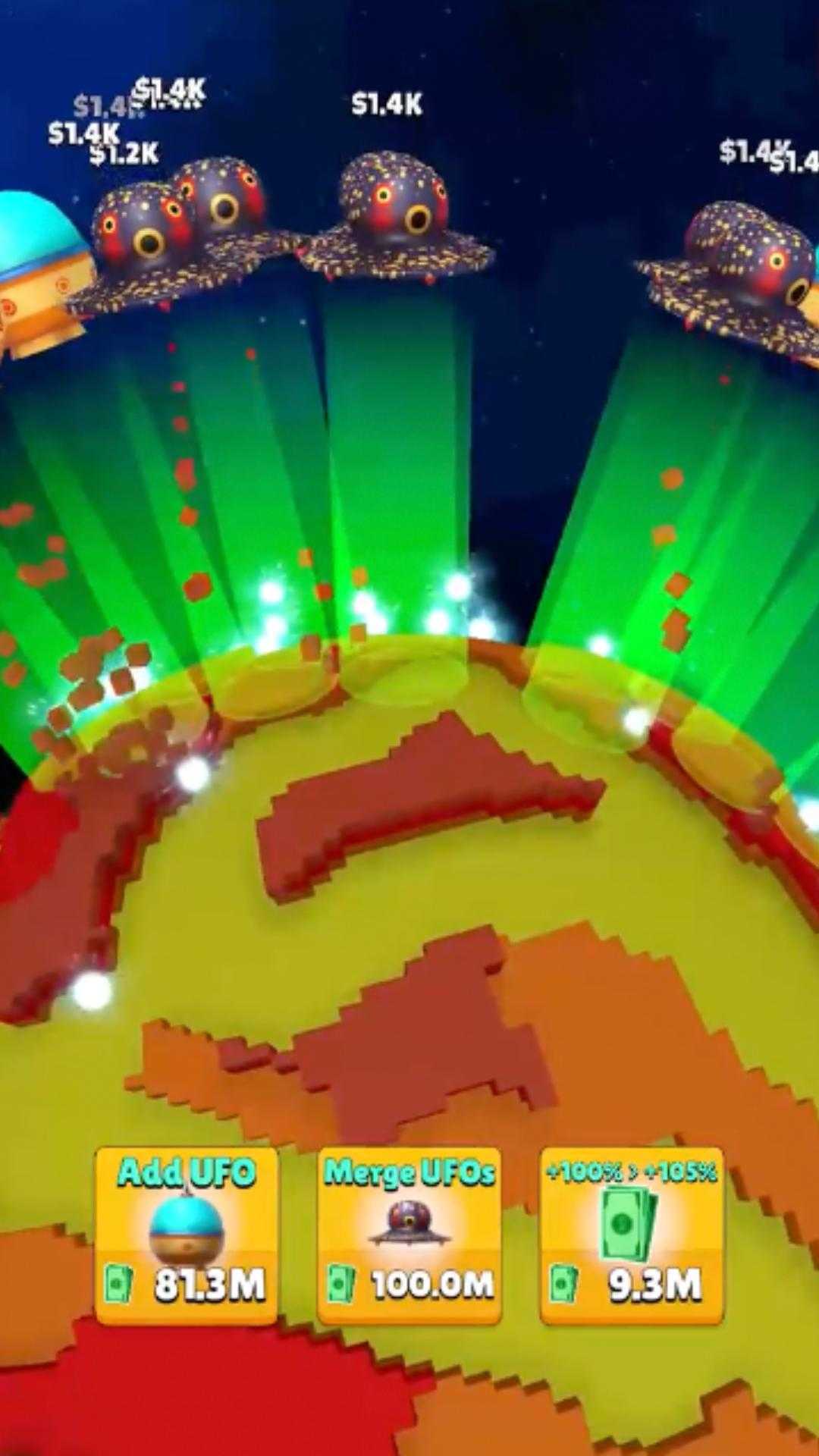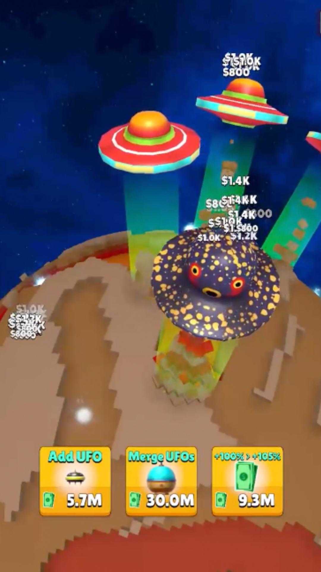 [什么游戏] ・游戏概念出奇的简单! ・这是 UFO Clicker Idle 游戏 ・新型点击空闲游戏诞生! [怎么玩] ・操作非常简单! ・只需点击即可游戏! ・您点击按钮以添加不明飞行物,合并不明飞行物并提高获得金钱的速度 ・不明飞行物会自动将地球表面方块吸尘