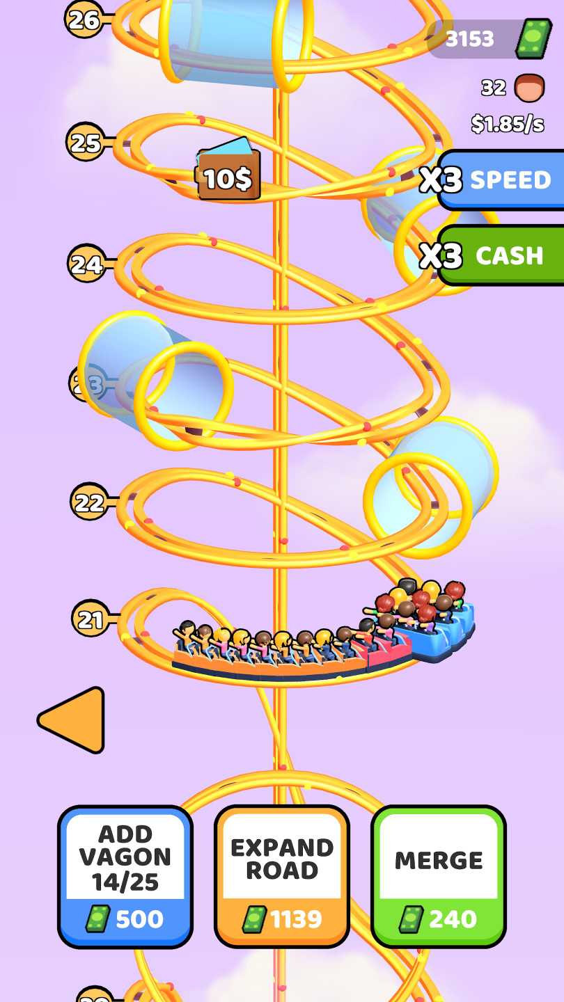 4、通过滑屏点击轻松的畅玩,老少咸宜随时上手;《空闲过山车》游戏2023最新版快来八门神器下载吧!