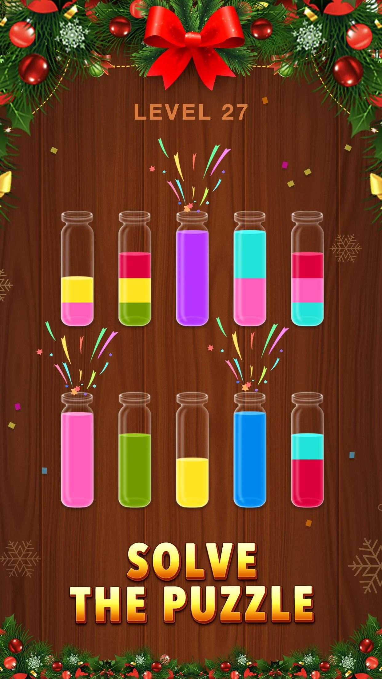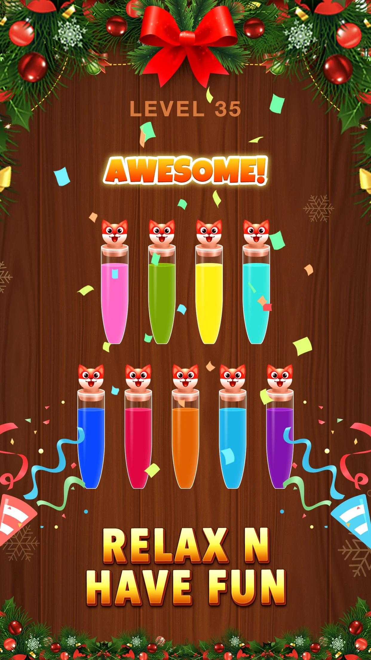 Sort Em All -- 一款经典且令人上瘾的颜色分类游戏,锻炼大脑,看看你有多聪明? 游戏目标 : 试管中装着五颜六色的液体,点击试管将相同颜色倒入同一个试管即可。