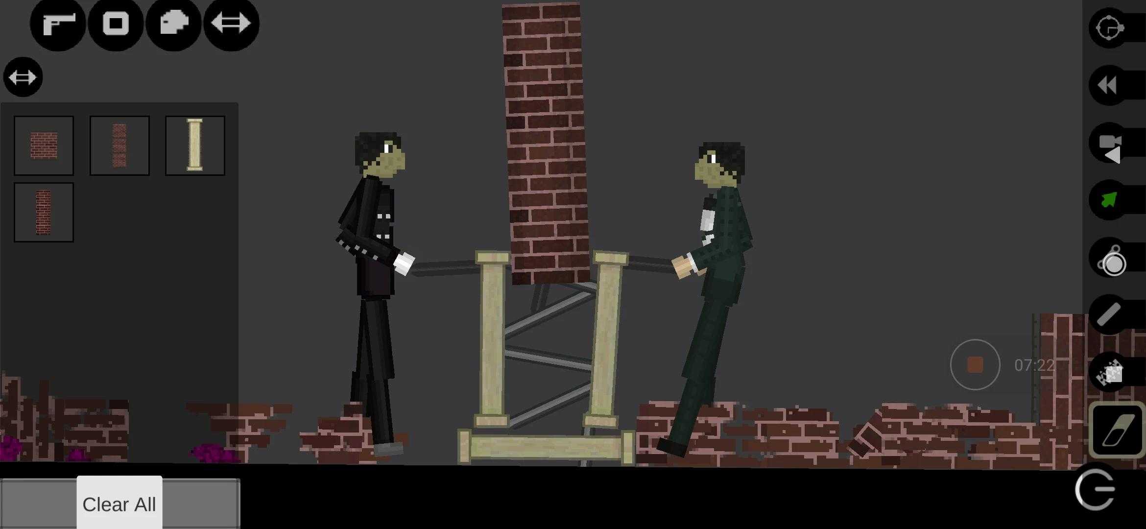 游戏是一个物理模拟世界,您可以在这个世界中绘制角色,并通过触摸、添加武器、坦克和建筑来移动角色。 .粘住娃娃并用枪摧毁它们 . 打拳打断骨头。各种武器 .您可以随意选择 .绘制和移动角色