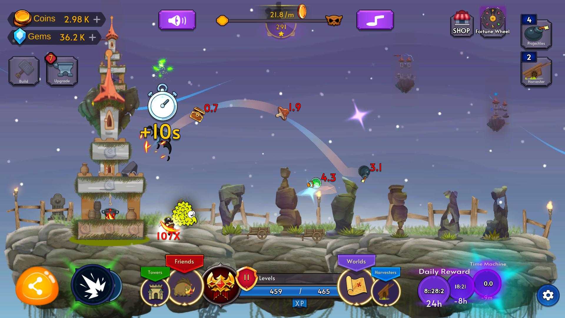 神奇的塔楼会发射礼物和药水,这些药水在撞击地面时会破裂。弄清楚如何尽可能多地保存! 高效升级特定的威力提升,找到自己的方式,并改善您的时间。