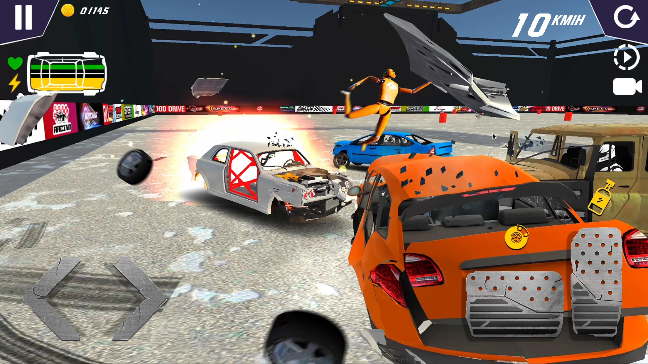 在汽车碰撞测试赛场上,你可以尝试多种方式来使用汽车的破坏,从跳跃、表演特技,到将汽车撞入各种陷阱和障碍物。您可以通过使用技巧撞毁他们的汽车来与对手竞争。您将能够加速到最高速度并通过造成史诗般的车祸而导致高速撞车。