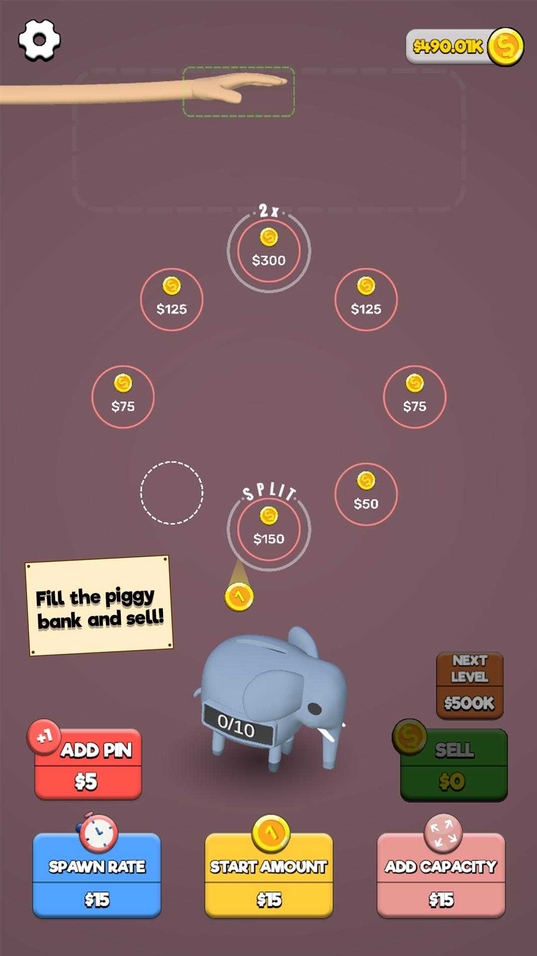 将手对准存钱罐,放下钱,享受省钱的乐趣。如果你足够有策略地放下,你可以积累更多的钱并访问不同的钱箱。