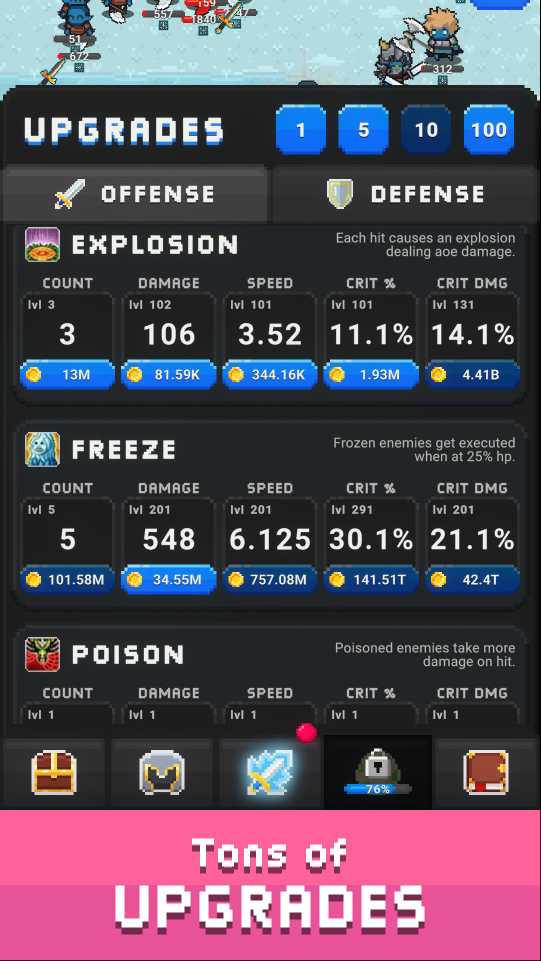 在这款具有砖块破坏功能的闲置角色扮演游戏中,让您的武器为您完成工作。坐下来放松,积累财富。 与敌人的无尽阶段作战,同时升级你的弹性但致命的武器。 特点: - 解锁各种道具,帮助你击倒敌人。 - 升级每种武器的统计数据,例如伤害、速度和暴击。 - 获取可以为您的力量提供不同增强的设备。 - 声望变得更强大。 - 无尽的关卡!
