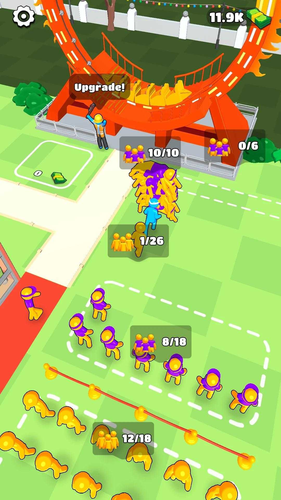 开始自己的游乐园业务。吸引游客并将他们带到景点,然后收款并用它来扩大您的公园!是时候解锁所有景点了,顾客正在等待!