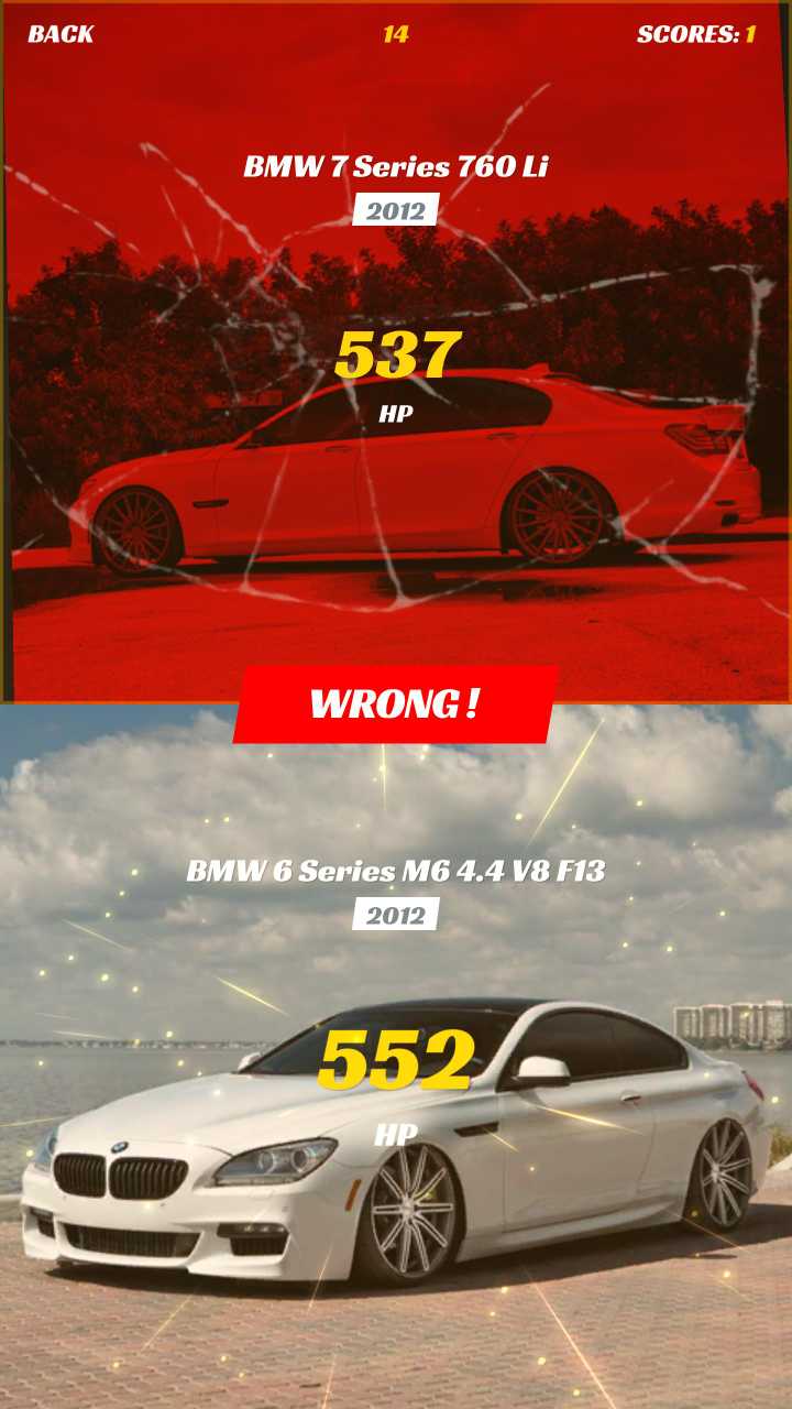你觉得你了解你的车吗?你知道所有的品牌和型号吗? 涡轮车测验是一款汽车问答游戏,您可以在其中猜测最快、最强大的汽车。 从 60 年代的肌肉车到今天的超级跑车,我们拥有适合各种场合的发动机。 您认为宝马M5和梅赛德斯E63 AMG哪个更强大? 在纽博格林,斯巴鲁WRX STI或三菱蓝瑟进化上哪个更快? 您可以在我们的测验中找到这一切。