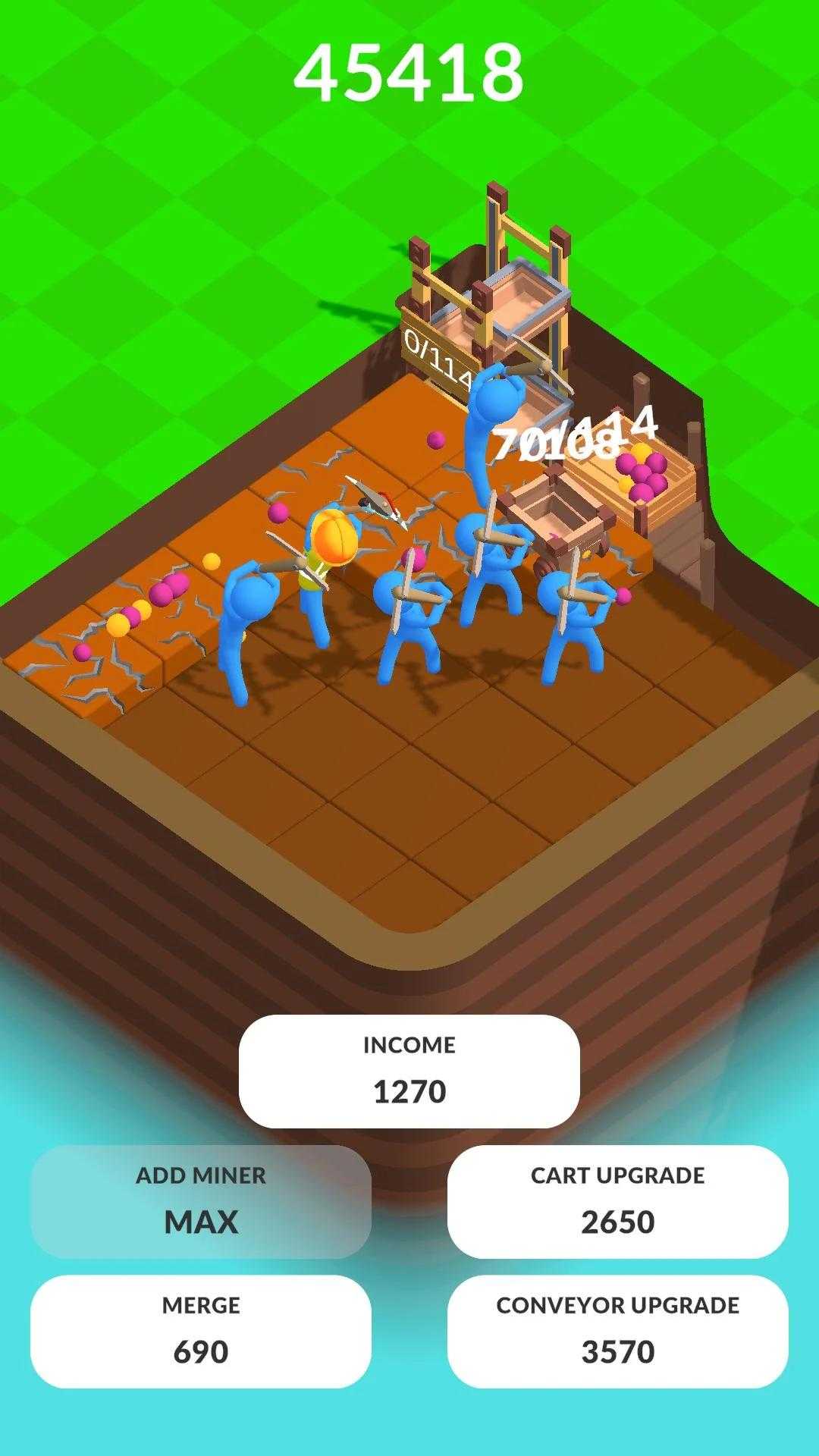1、《采矿挖掘3D》游戏中,认真应对游戏中的关卡,难度会不断提高